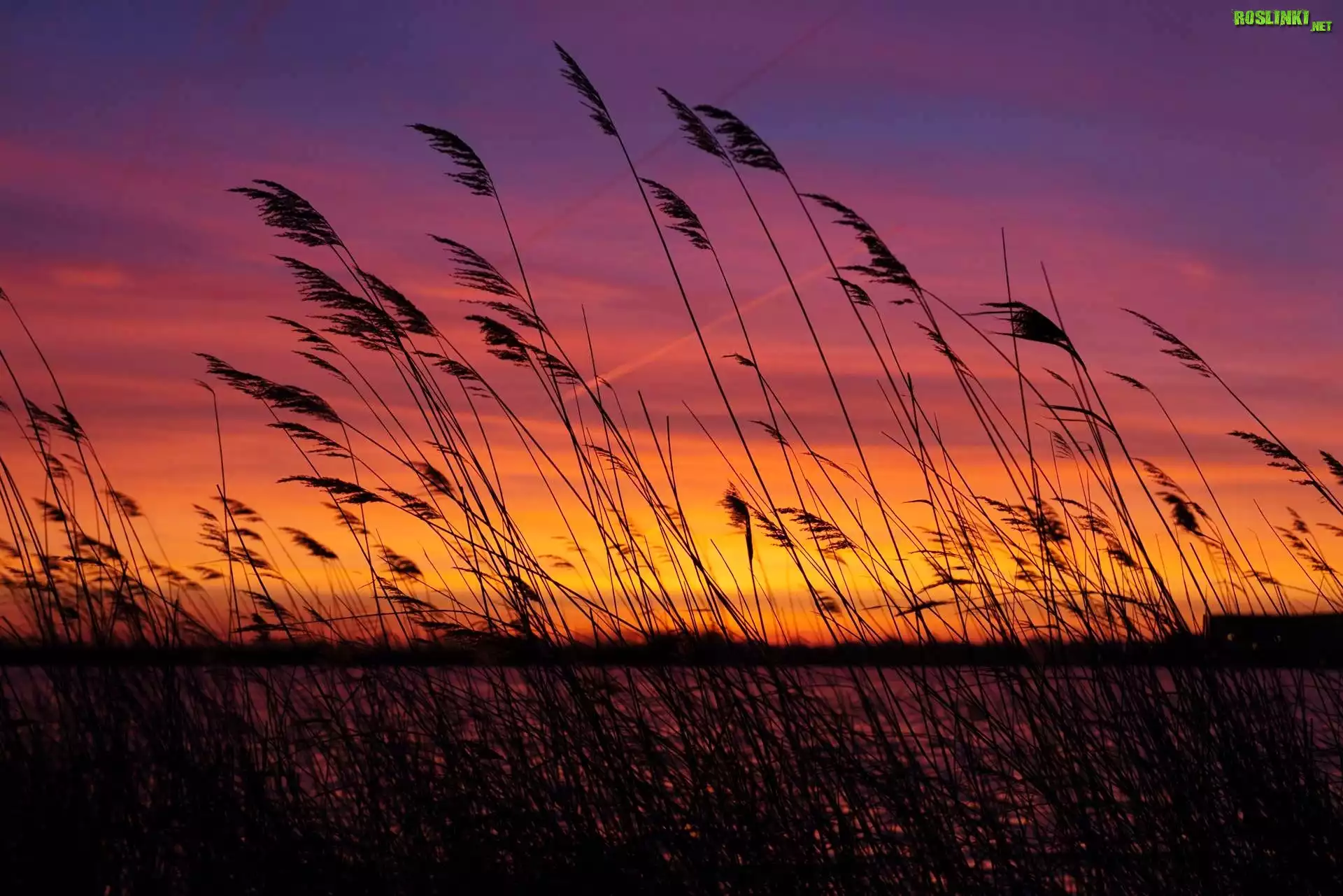 Rośliny: Zachód, Słońca, Trzciny