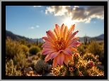 Kaktus, Kwiat, Niebo, Słońce, Grafika AI