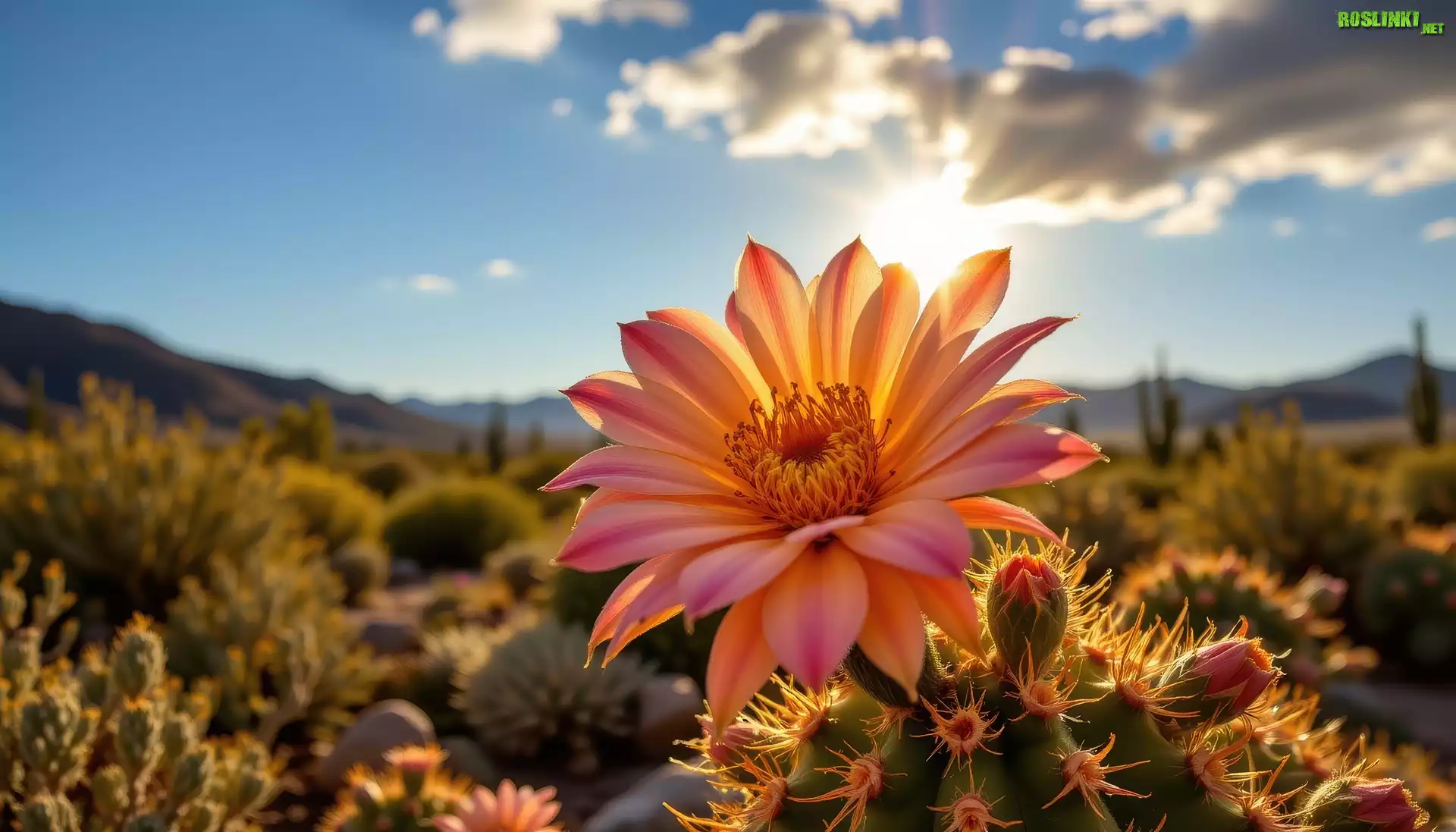 Rośliny: Kaktus, Kwiat, Niebo, Słońce, Grafika AI