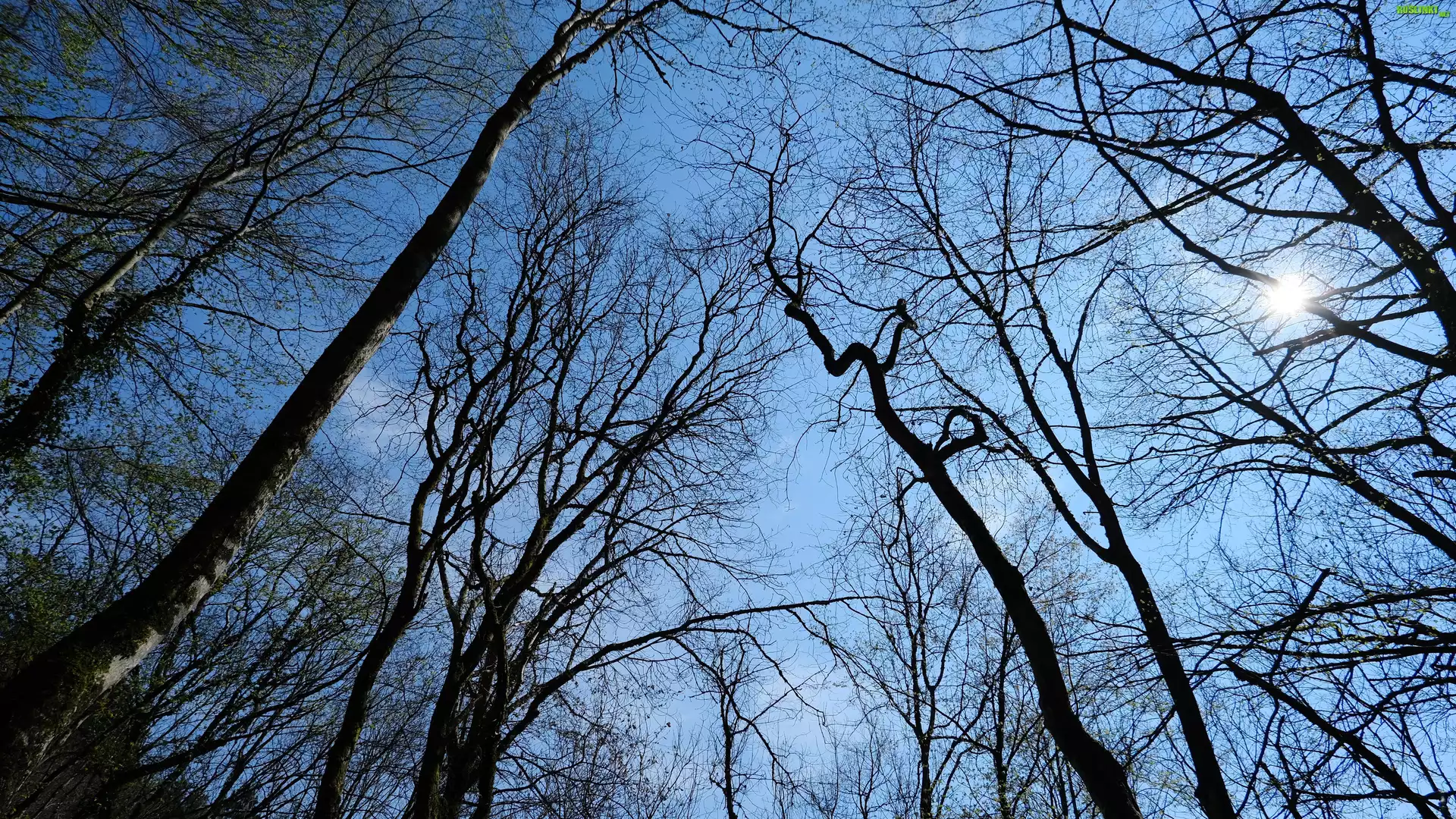 Drzewa, Słońce, Niebo
