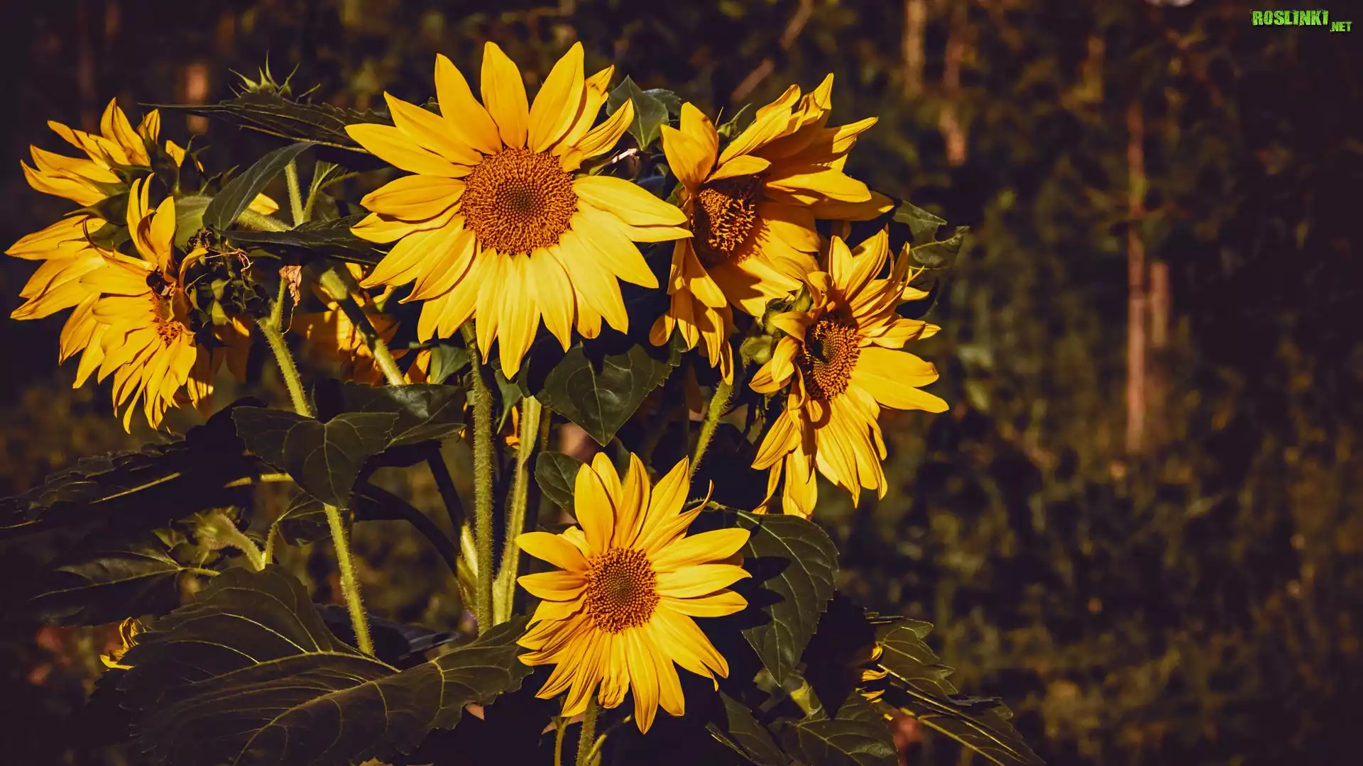 Słoneczniki, Blask, Słońca, Drzewa, Rozmycie