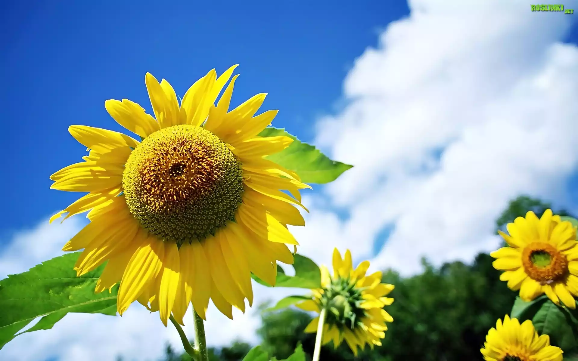 Rośliny: Słoneczniki, Na Tle, Nieba