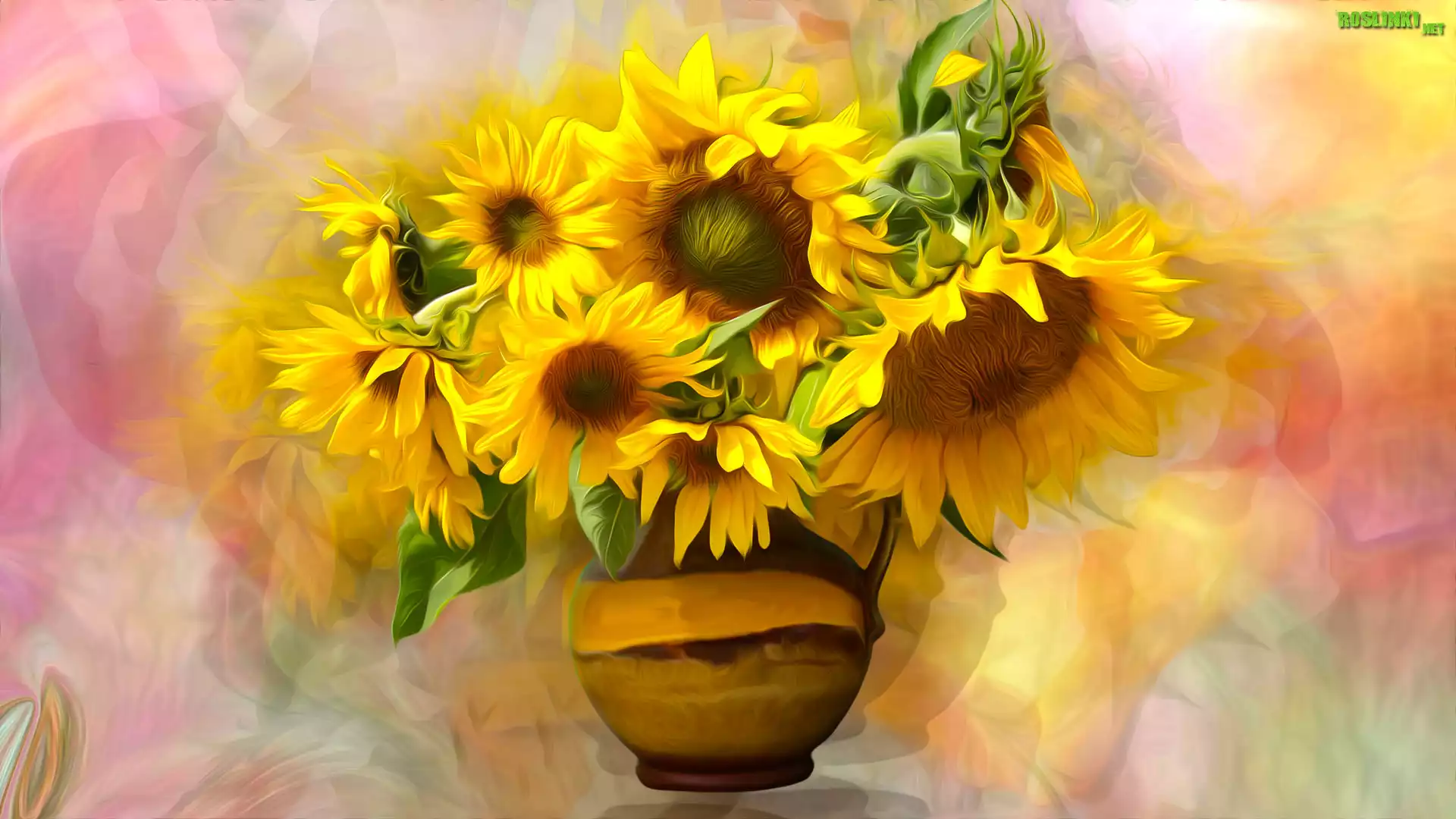 Rośliny: Słoneczniki, Bukiet, Wazon, Grafika