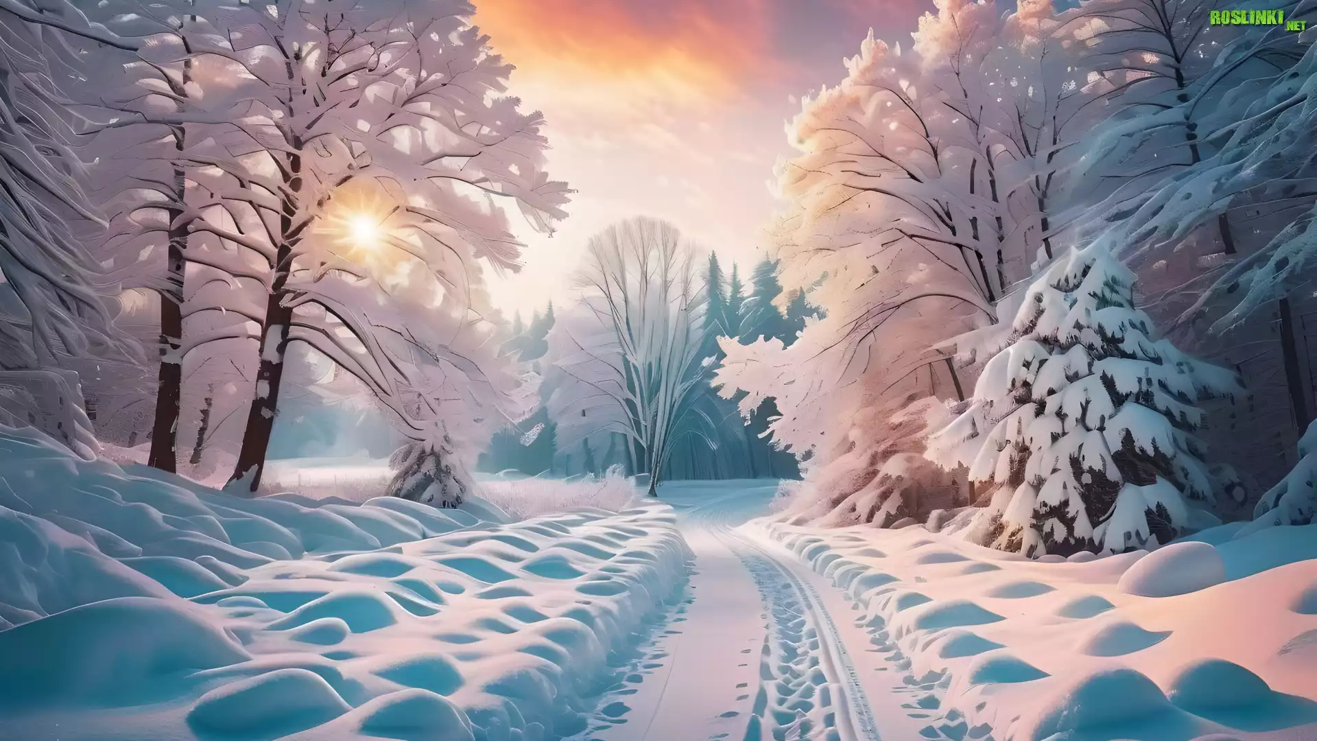 Rośliny: Zima, Drzewa, Droga, Słoneczny, Dzień, Grafika