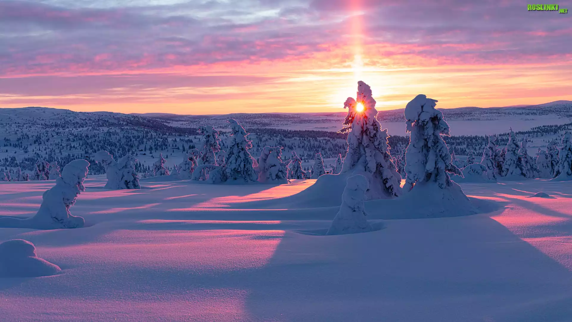 Rośliny: Zima, Wschód słońca, Śnieg, Ośnieżone, Drzewa