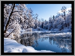 Rośliny: Zima, Śnieg, Oszronione, Drzewa, Jezioro