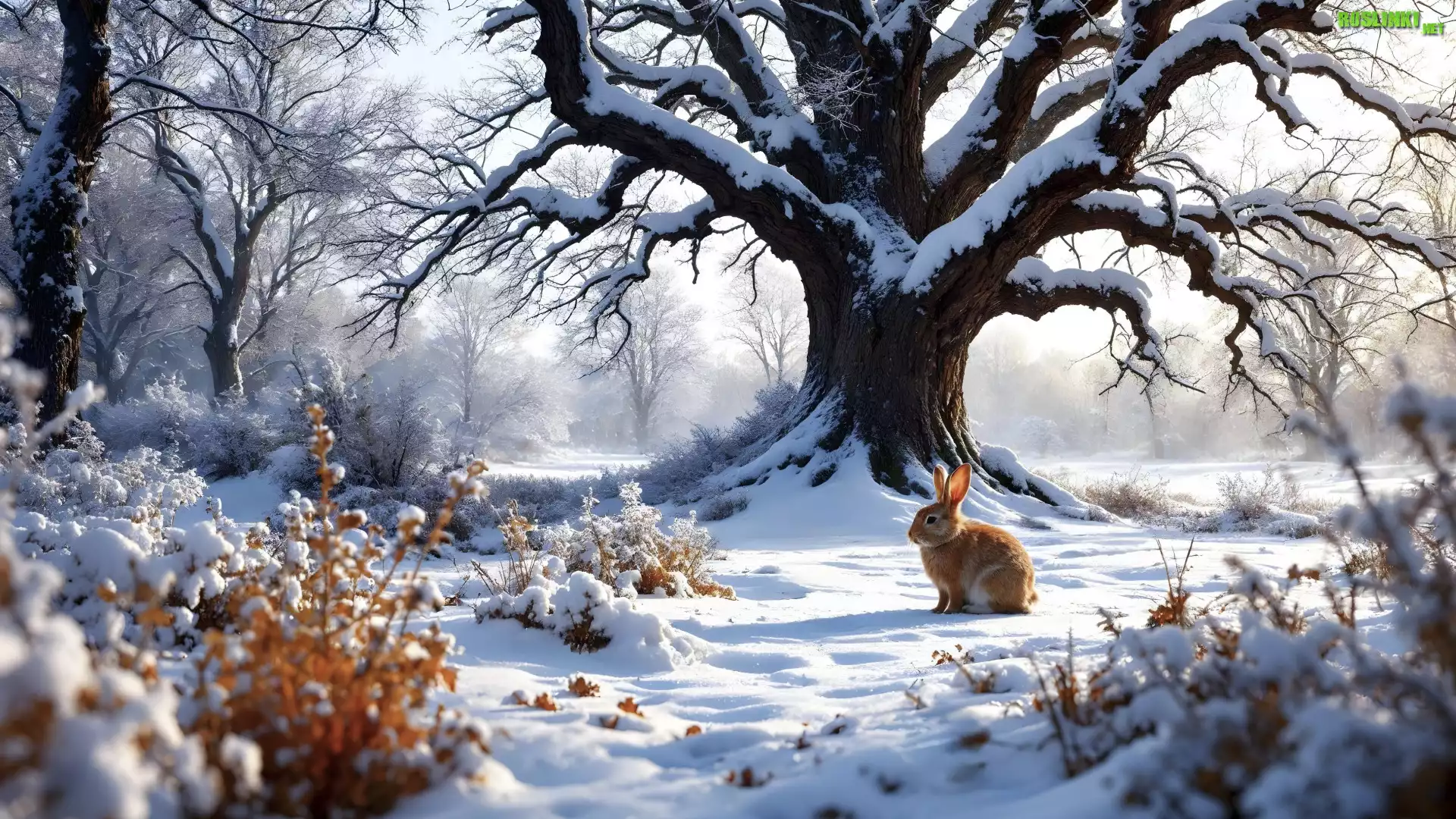 Rośliny: Zima, Zając, Drzewa, Śnieg