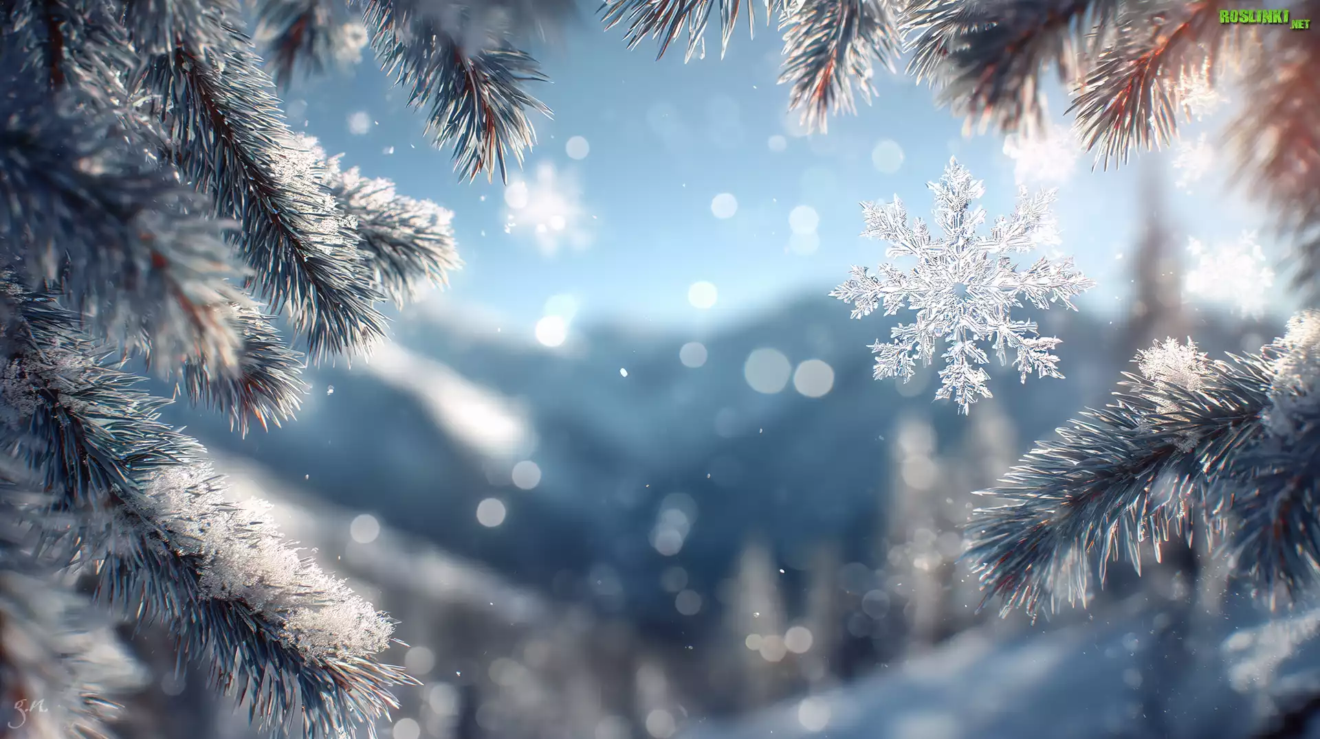 Rośliny: Śnieżynka, Zima, Gałązki, Sosna, Grafika AI