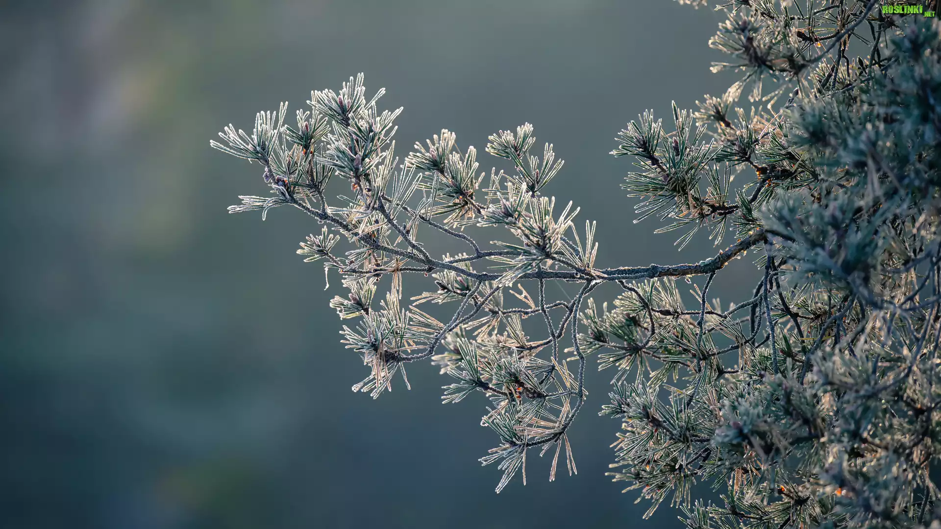 Rośliny: Gałązka, Sosna, Szron, Rozmyte tło