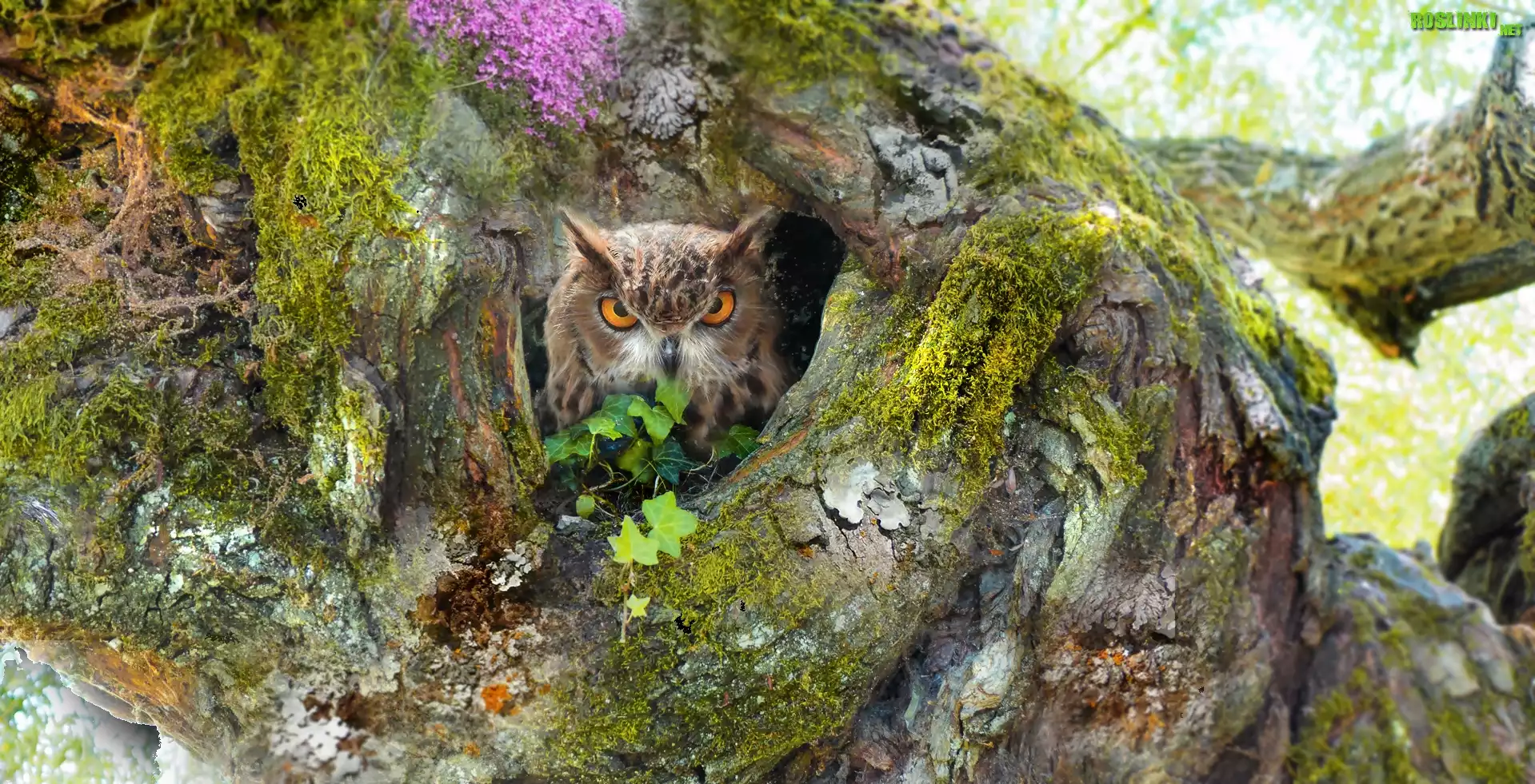 Rośliny: Sowa, Puchacz zwyczajny, Drzewo, Dziupla