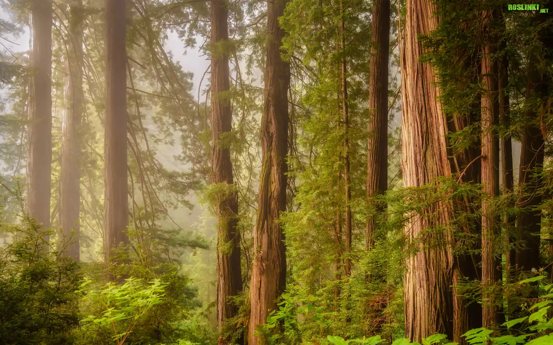 Rośliny: Stany Zjednoczone, Stan Kalifornia, Park Narodowy Redwood, Las, Mgła, Drzewa, Sekwoje