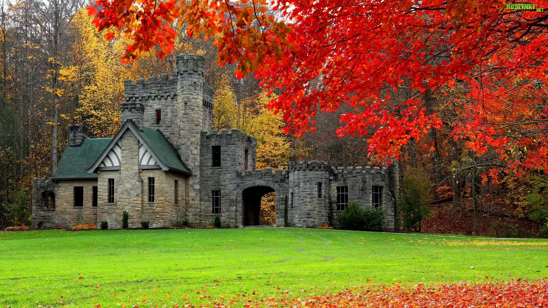 Stany Zjednoczone, Stan Ohio, Miasto Willoughby Hills, Park North Chagrin Reservation, Squires Castle - Zamek Giermka, Jesień, Drzewa |