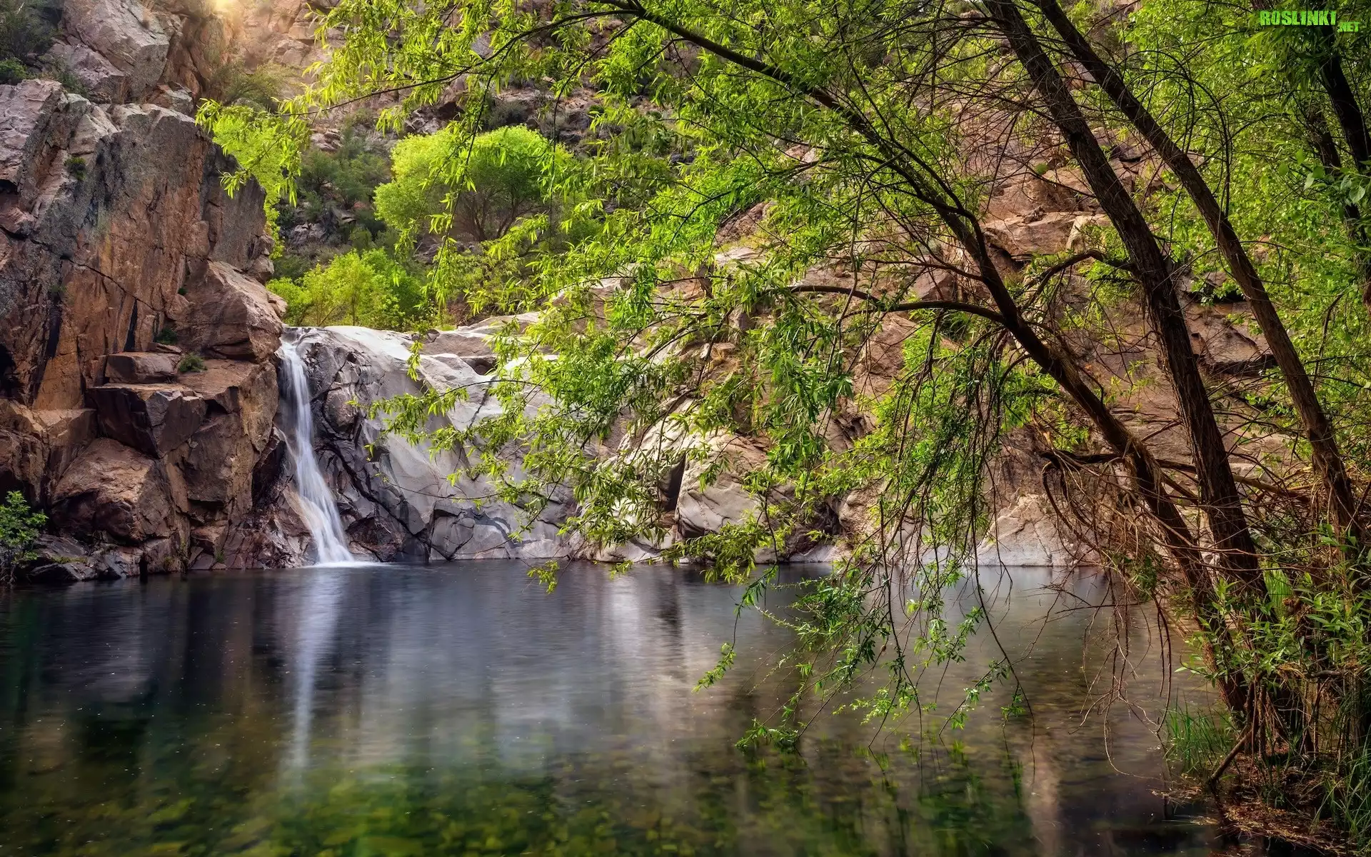 Rośliny: Stany Zjednoczone, Arizona, Skały, Drzewa, Wodospad, Oasis, Castle Creek Wilderness