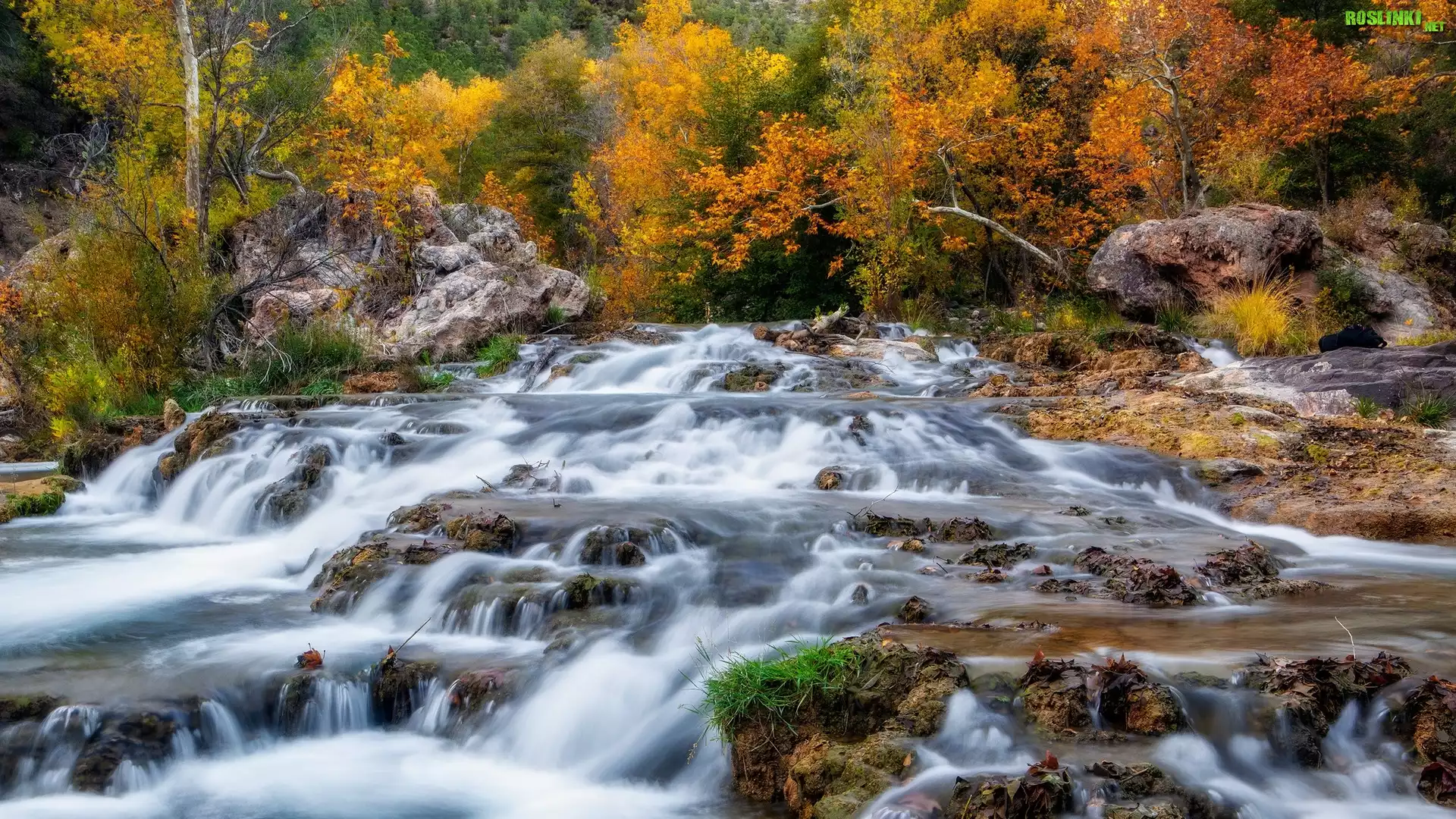 Rośliny: Stany Zjednoczone, Arizona, Strawberry, Fossil Creek, Rzeka, Jesień, Drzewa, Skały