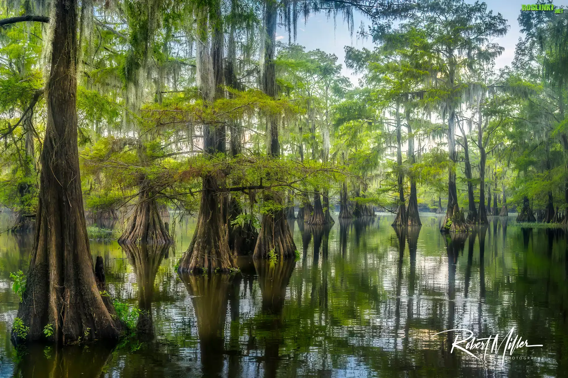Stany Zjednoczone, Teksas, Jezioro, Caddo Lake, Drzewa, Cyprysy bagienne