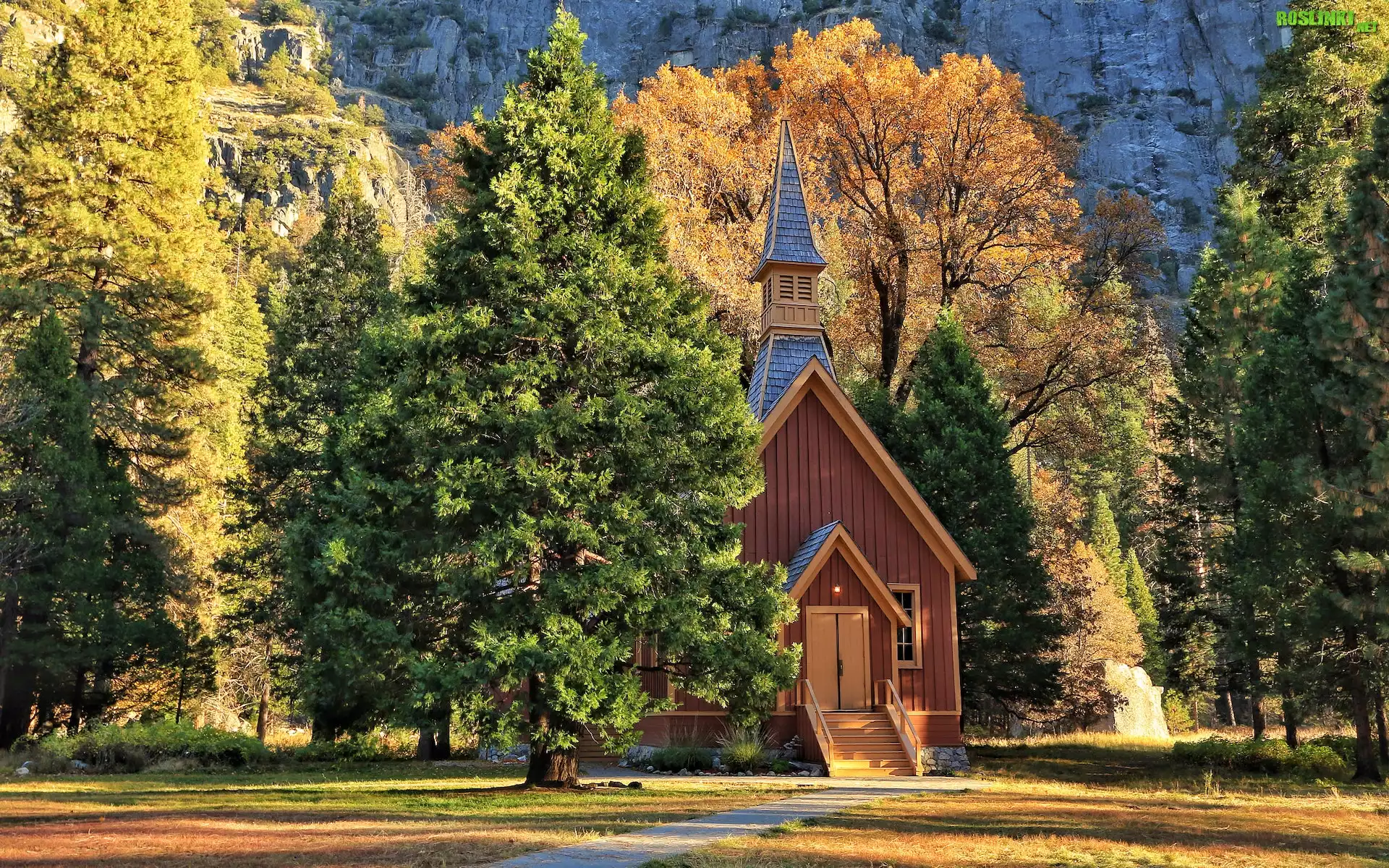 Rośliny: Stany Zjednoczone, Kalifornia, Park Narodowy Yosemite, Drzewa, Kaplica, Kościółek