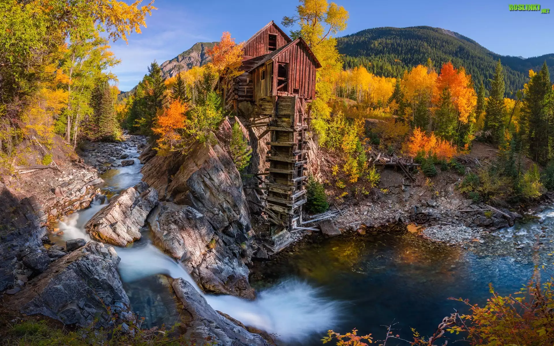 Rośliny: Stany Zjednoczone, Kolorado, Młyn, Crystal Mill, Jesień, Drzewa, Rzeka
