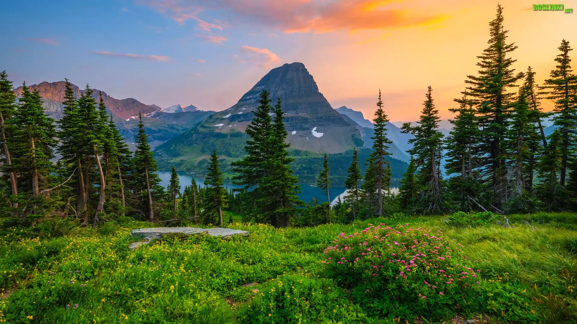 Rośliny: Stany Zjednoczone, Montana, Park Narodowy Glacier, Góry, Drzewa, Łąka, Kwiaty