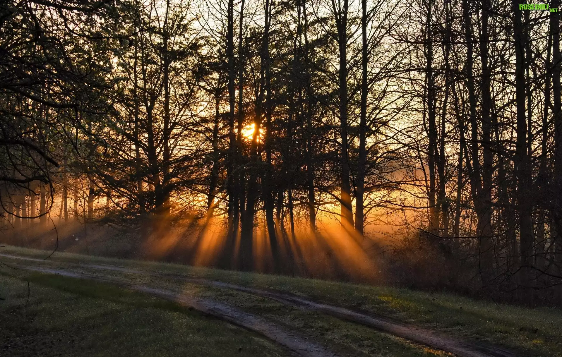 Stany Zjednoczone, Stan Maryland, Miasto Annapolis, Park Bacon Ridge, Las, Droga, Przebijające światło |