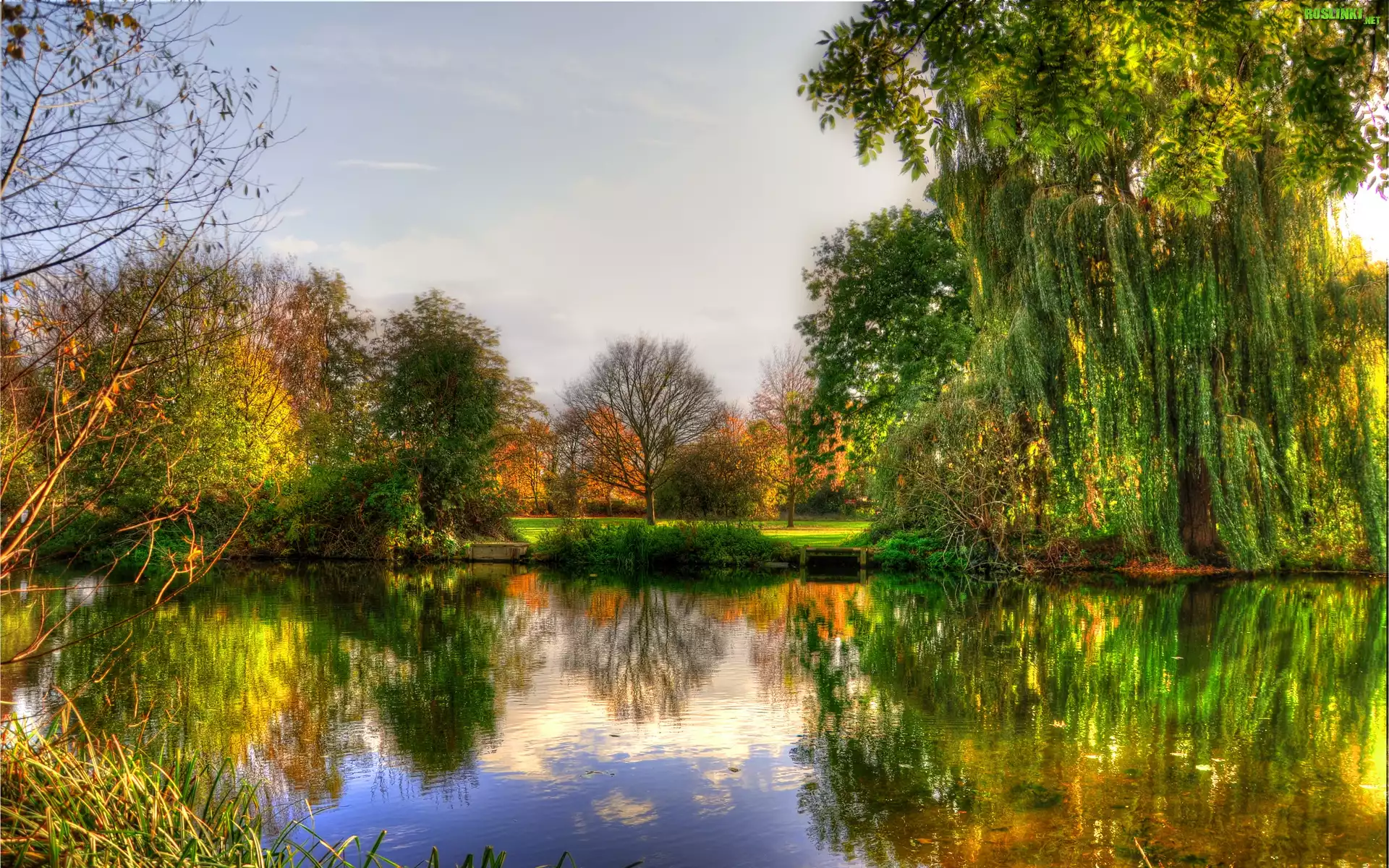 Rośliny: Staw, Park, Drzewa, Jesień