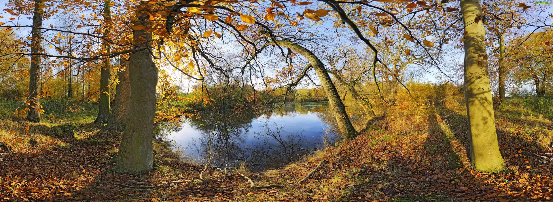 Jesień, Staw, Drzewa