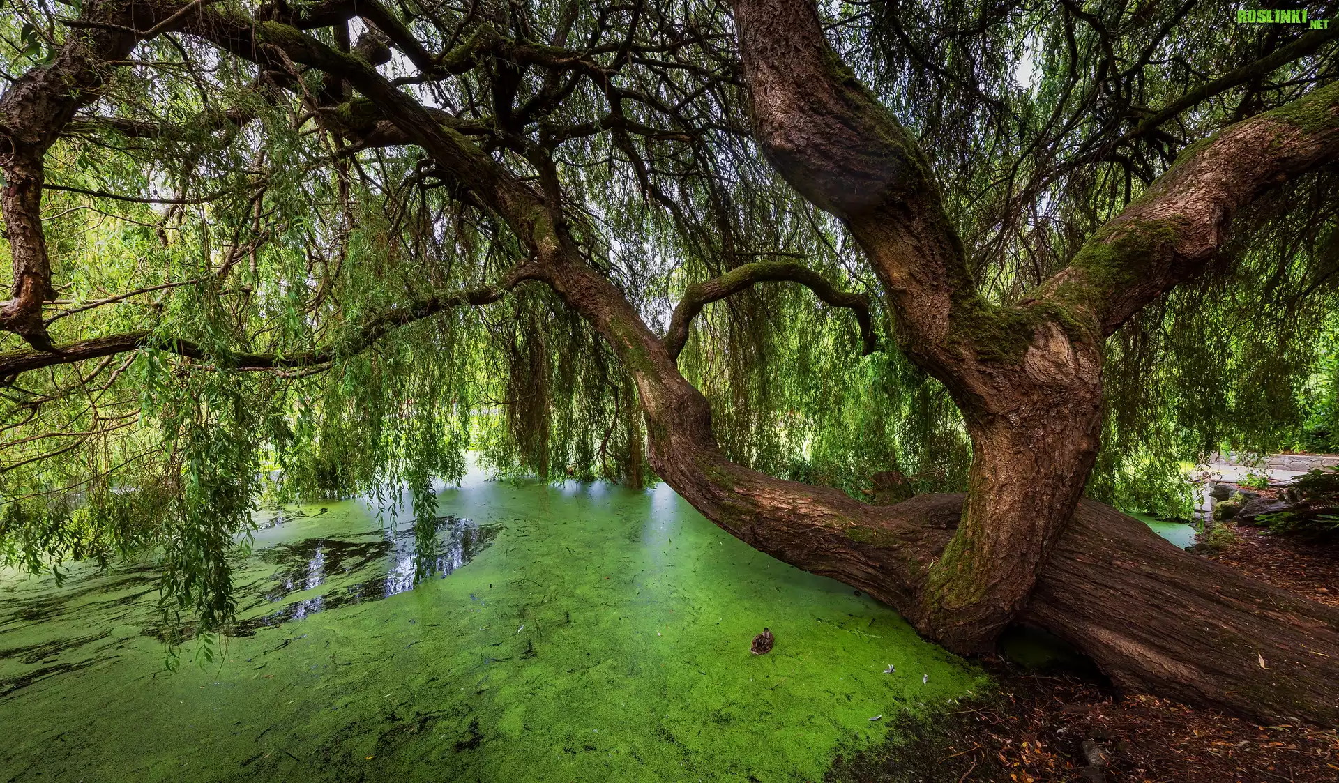 Rośliny: Pochylone, Drzewo, Wierzba, Staw