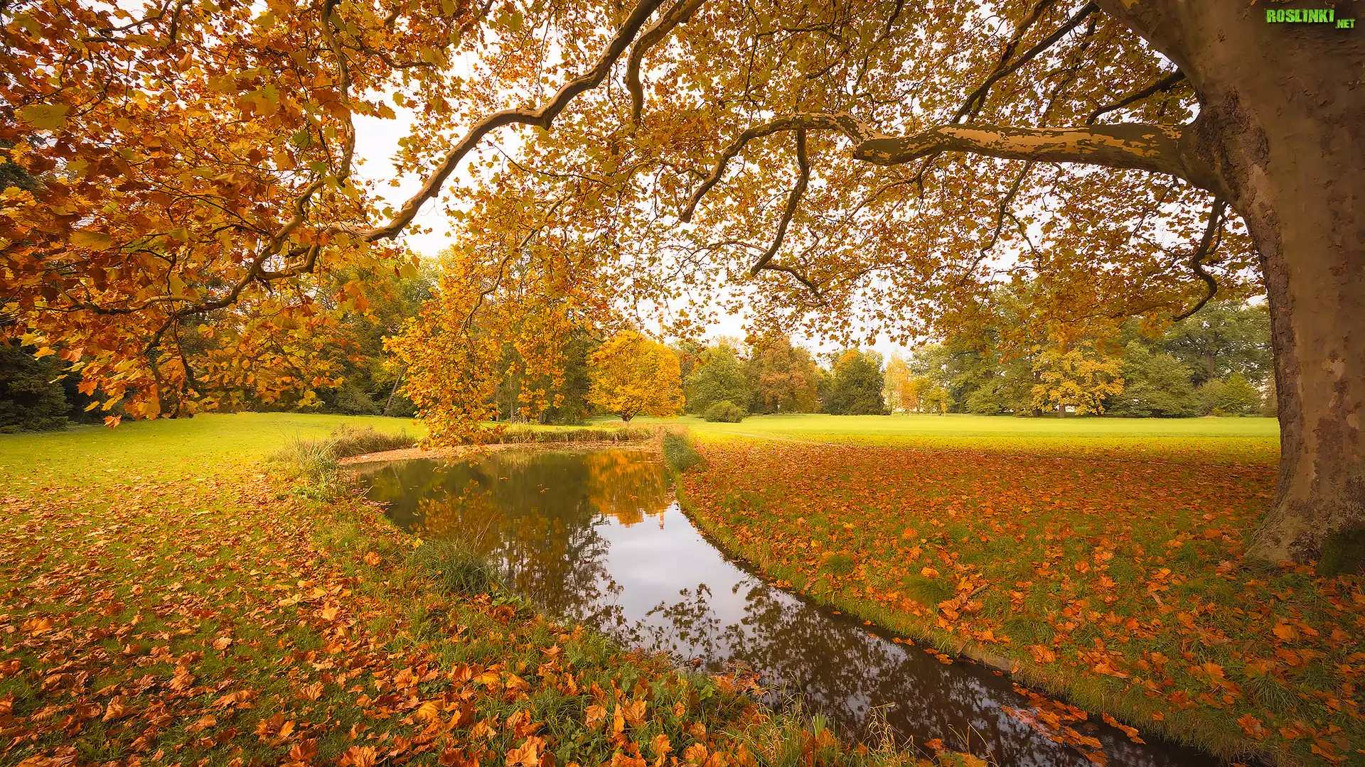 Rośliny: Park, Staw, Polana, Drzewa, Jesień