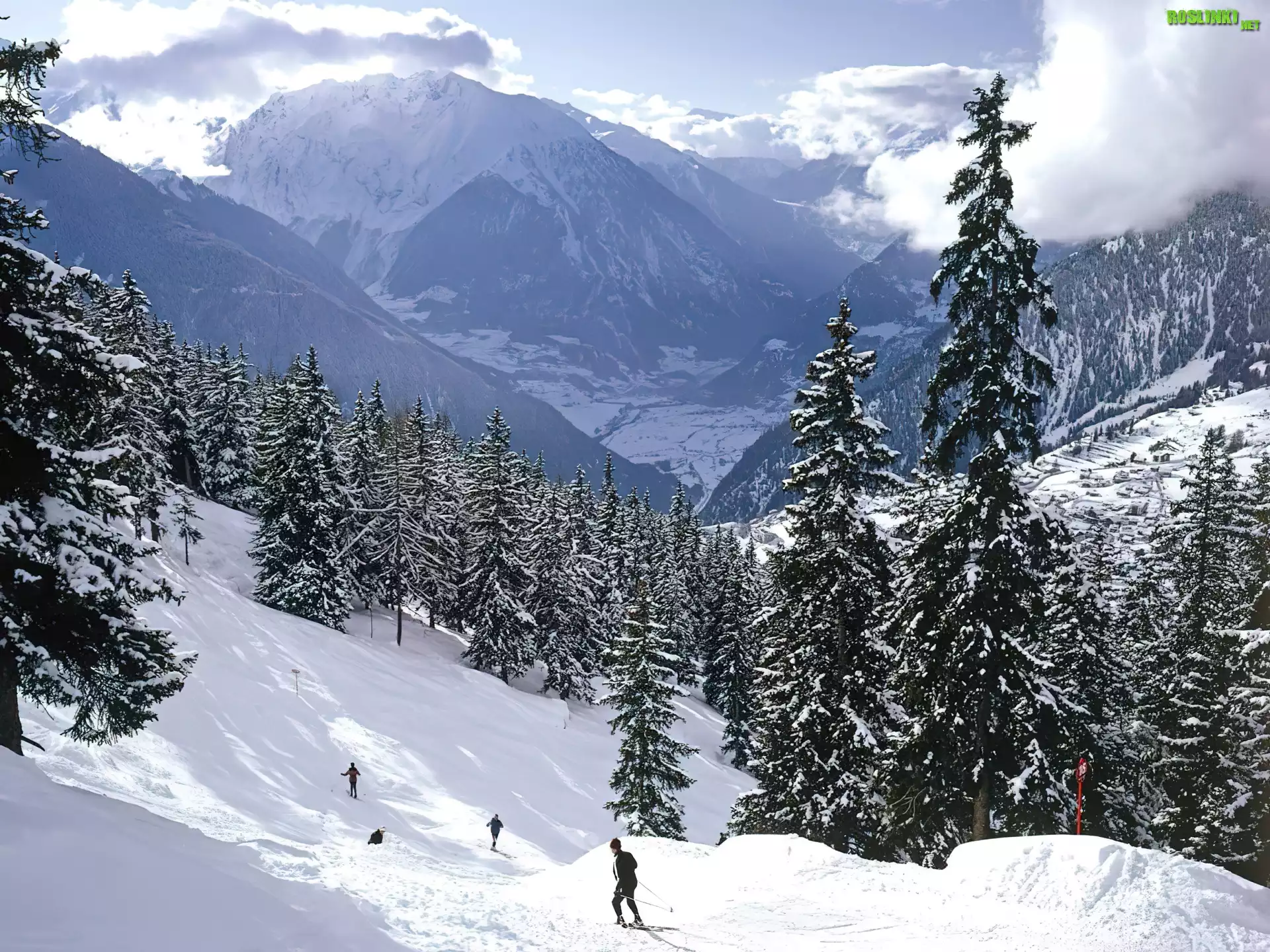 Rośliny: Stok, Górski, Ośnieżone, Iglaki, Zima, Narciarze