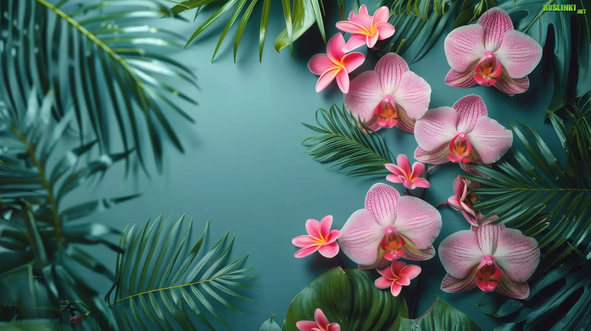 Rośliny: Kwiaty, Różowe, Orchidee, Storczyki, Liście, Grafika