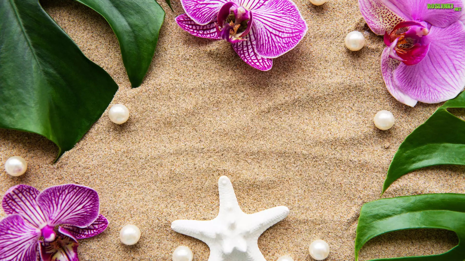 Rośliny: Piasek, Liście, Kwiaty, Storczyki, Perły, Rozgwiazda, Kompozycja