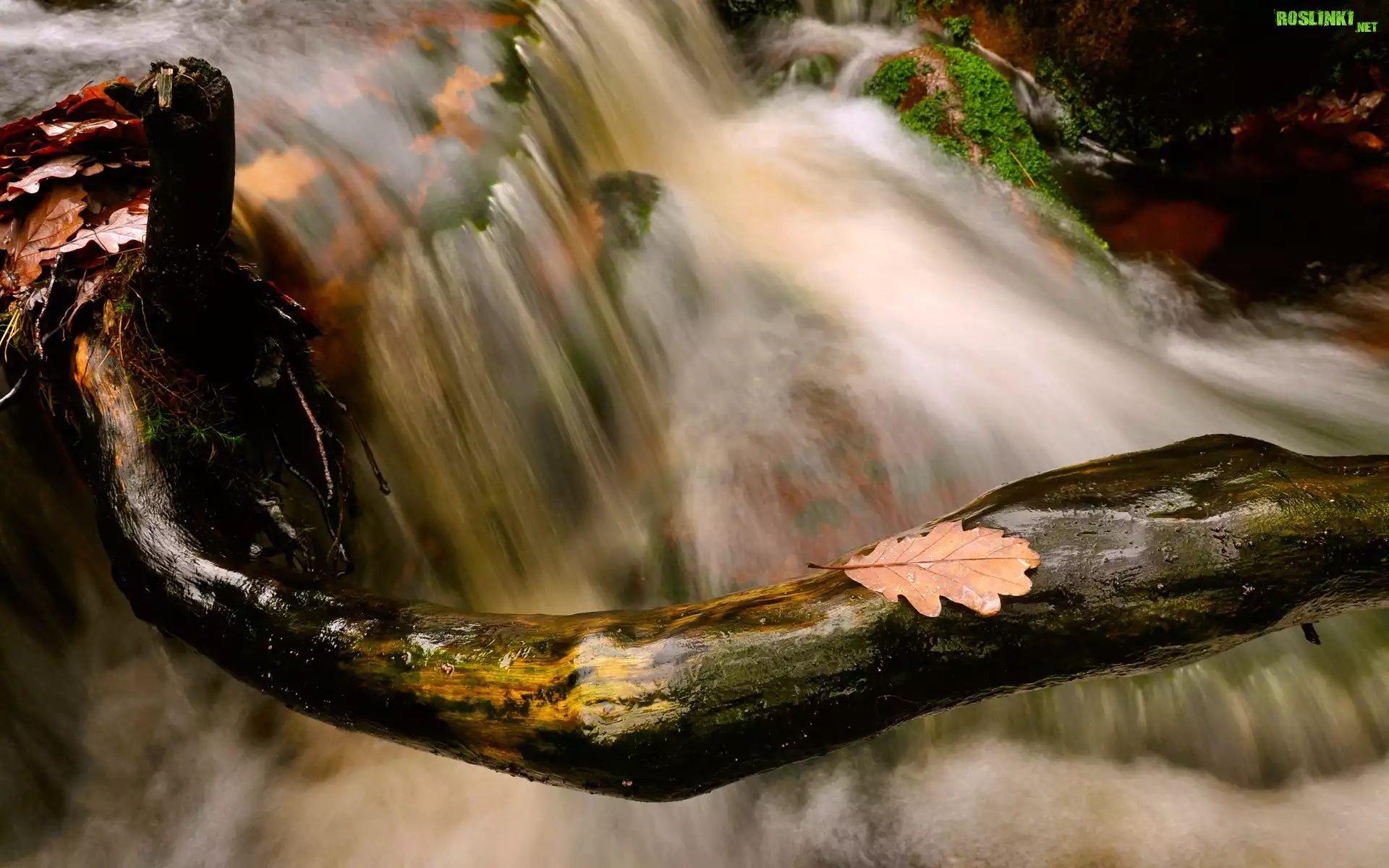 Rośliny: Strumień, Kamienie, Gałęzie, Liście, Jesień