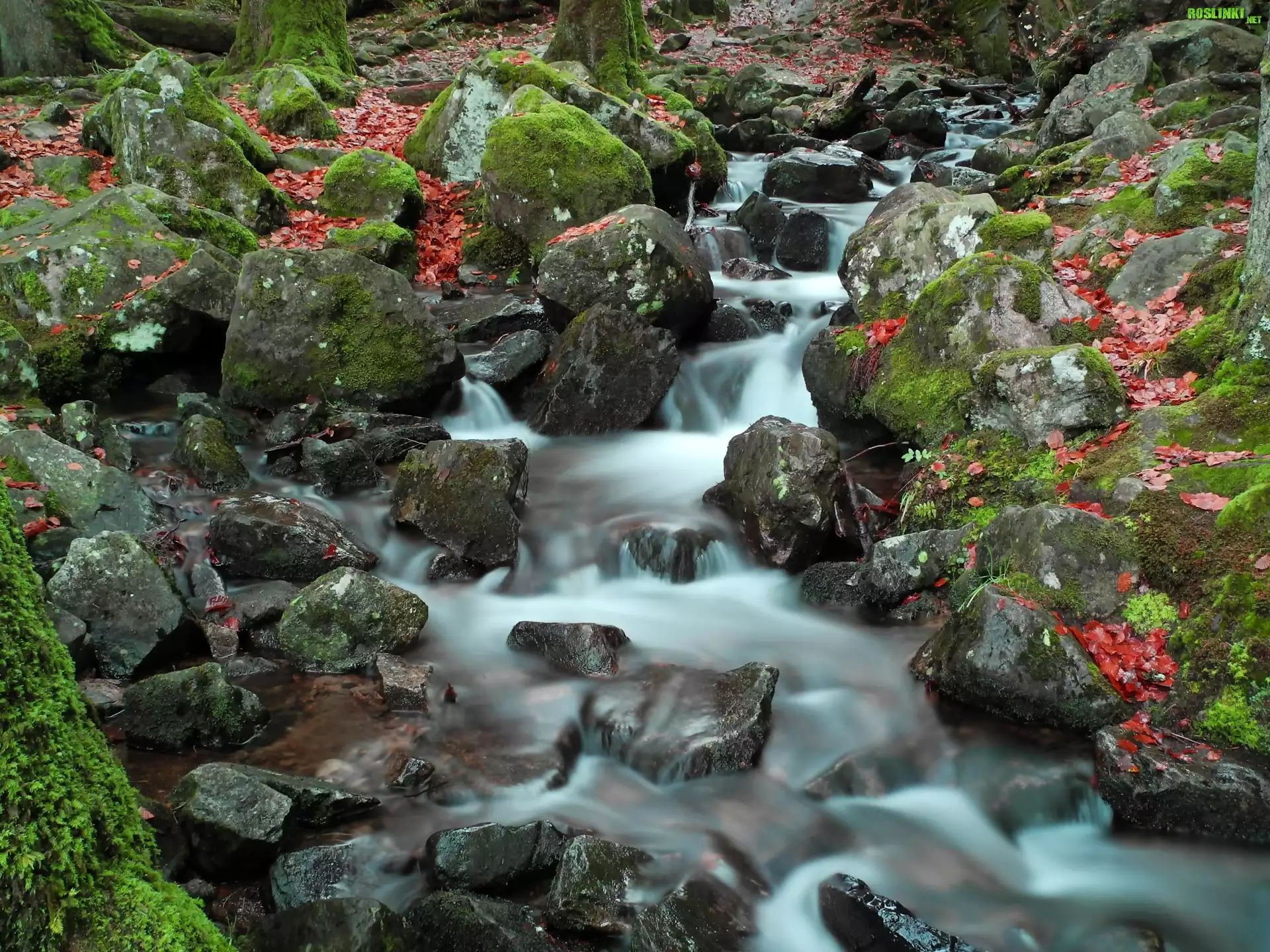 Rośliny: Strumyk, Kaskada, Omszałe, Kamienie