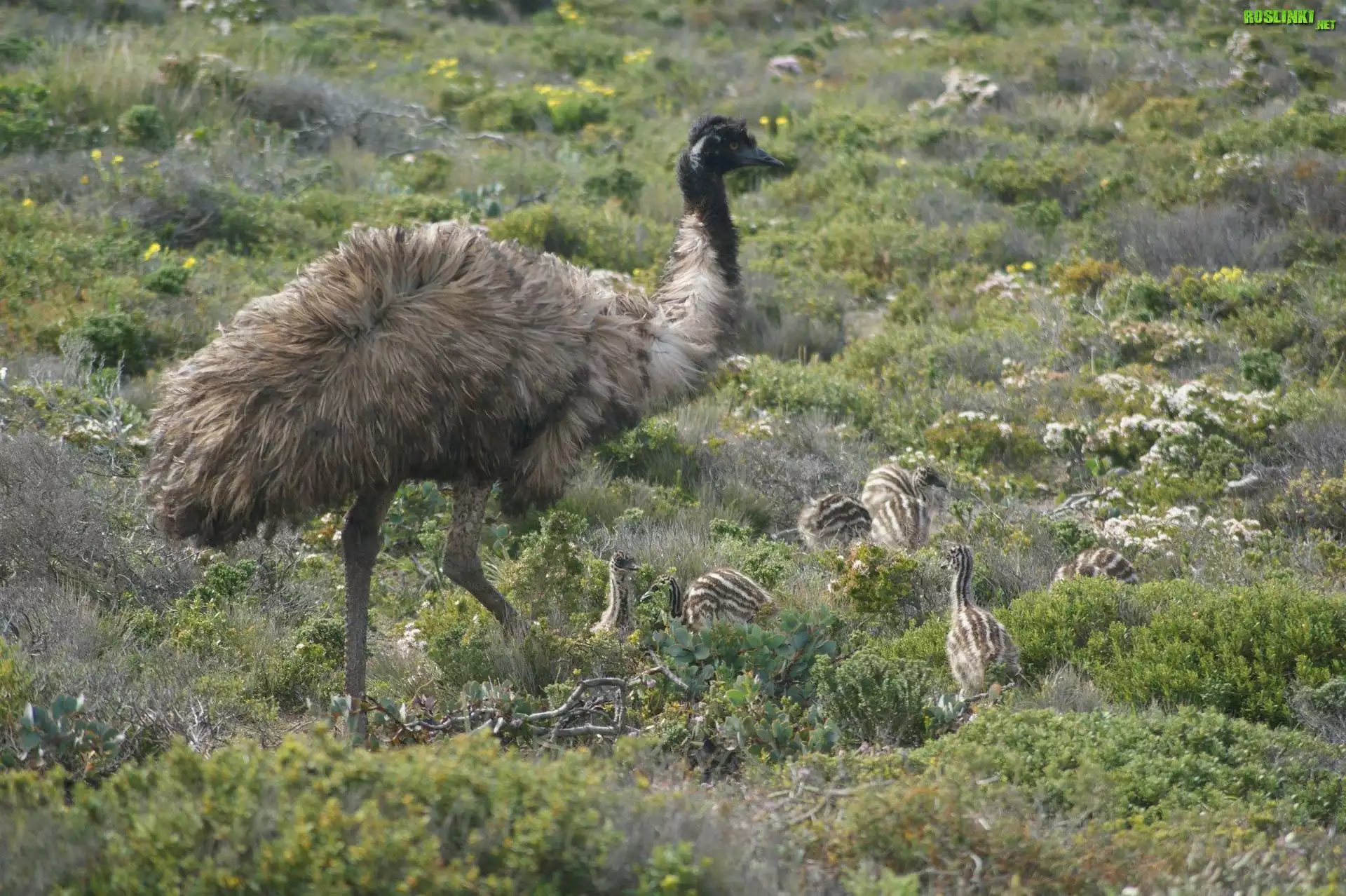 Rośliny: Struś, Emu, Pisklęta, Rośliny