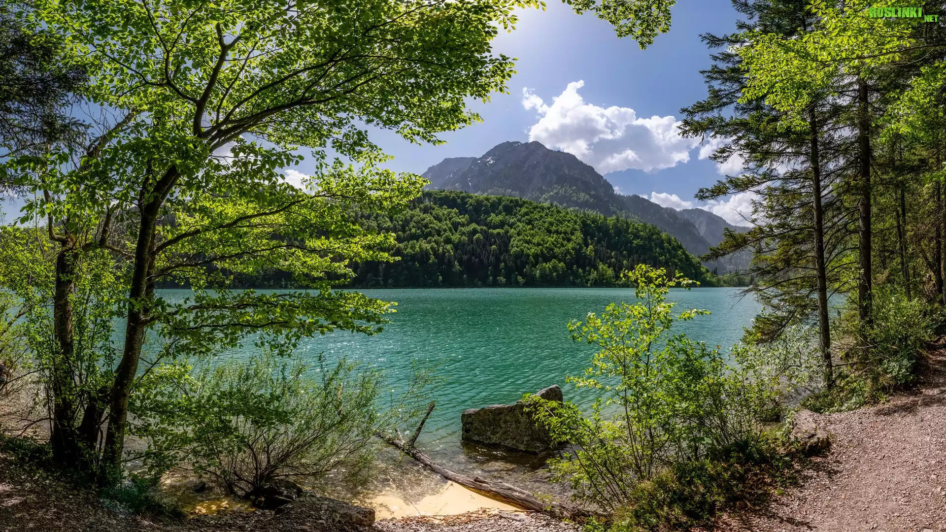 Rośliny: Austria, Styria, Góry, Jezioro Leopoldsteinersee, Drzewa, Chmury