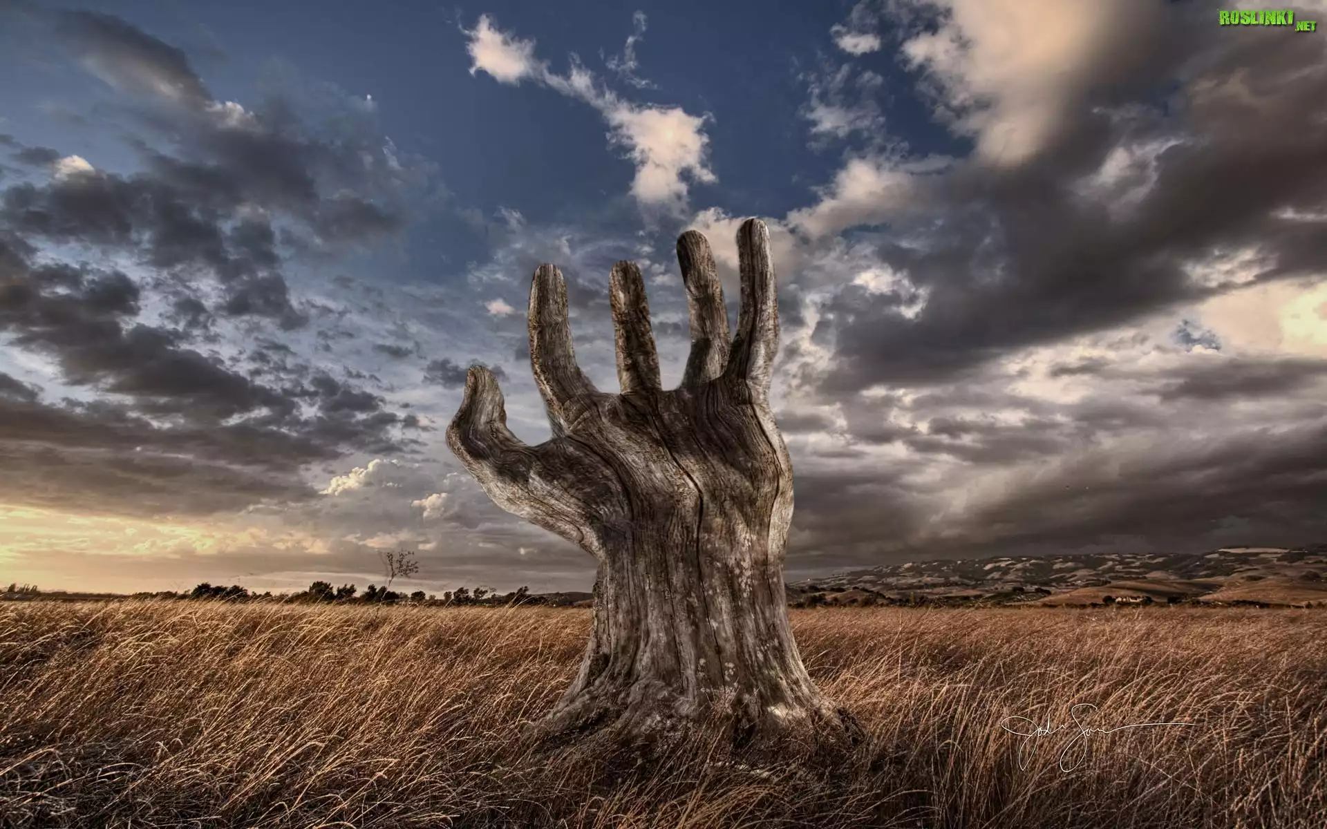 Suche, Drzewo, Kształt, Dłoni, Chmury