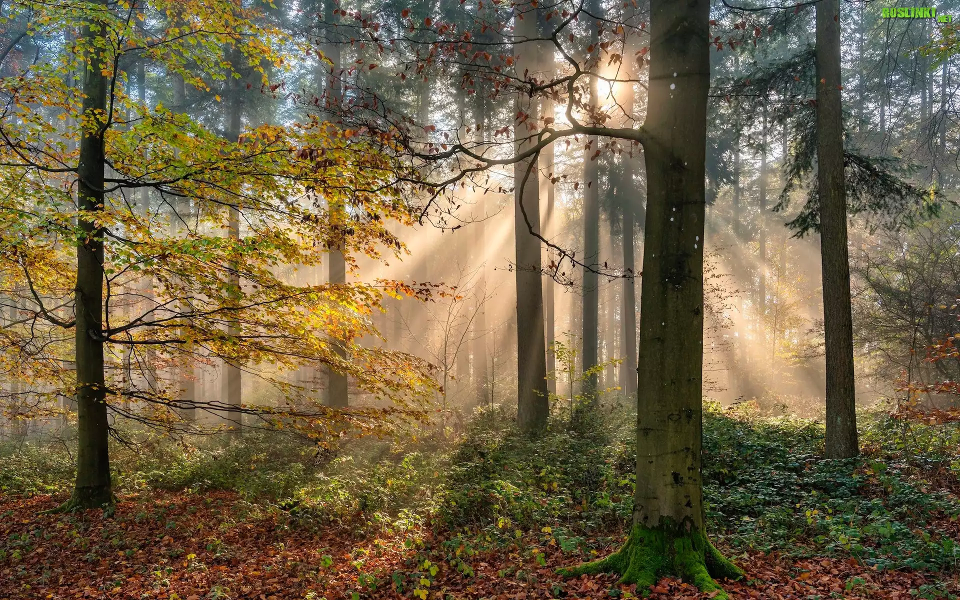 Rośliny: Las, Jesień, Przebijające światło, Drzewa, Rośliny