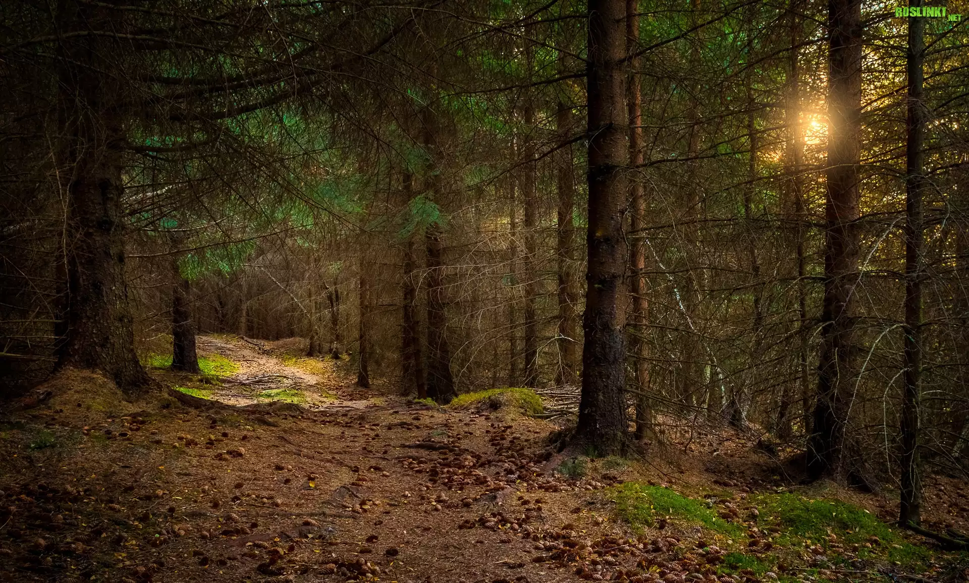 Rośliny: Norwegia, Region Rogaland, Gmina Sandnes, Las, Ścieżka, Drzewa, Przebijające światło