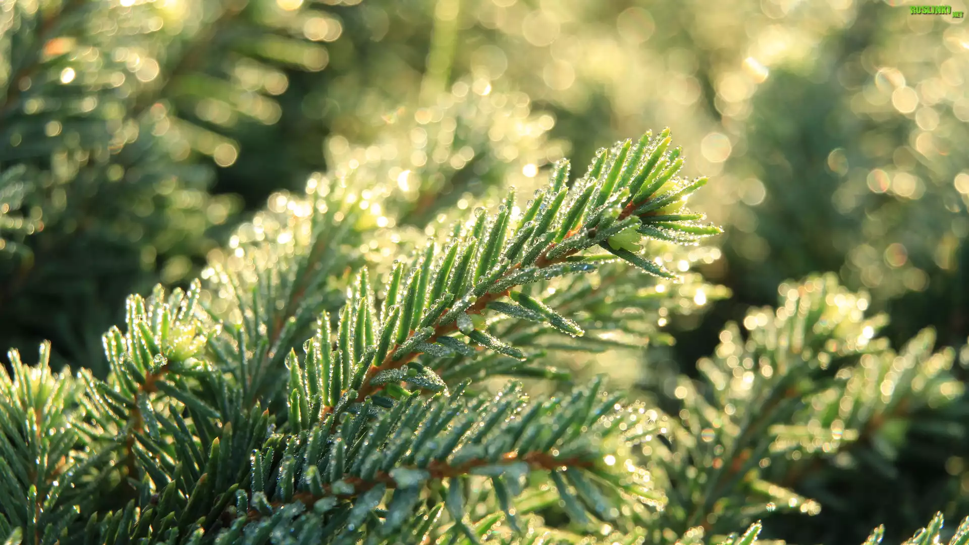 Rośliny: Gałąź, Świerk, Krople, Rosa, Zbliżenie