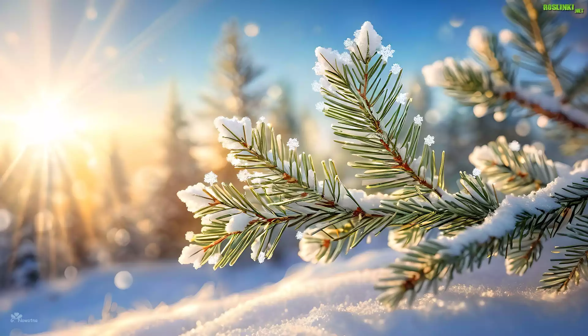 Rośliny: Gałązki, Świerk, Śnieg, Zima, Grafika