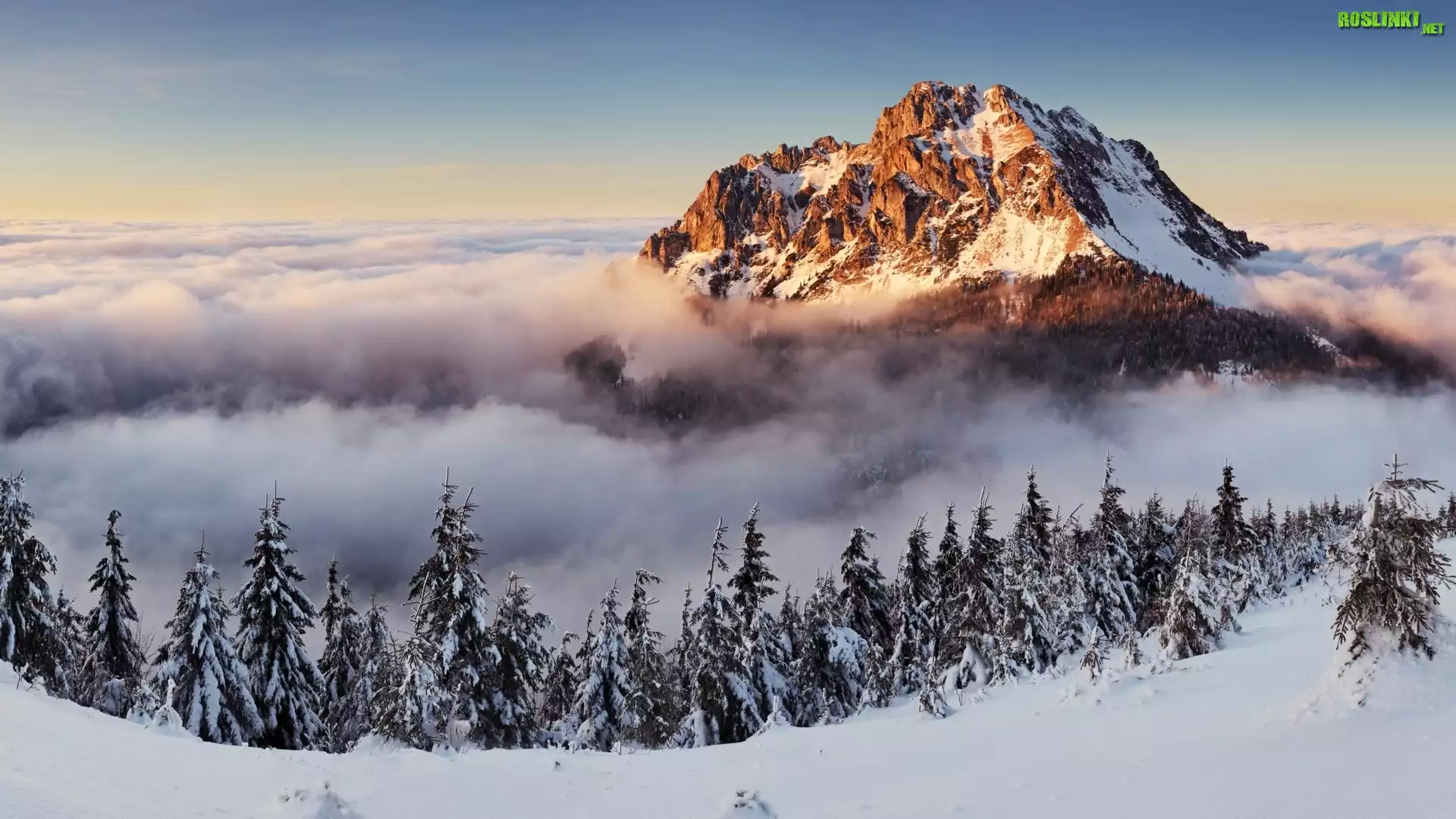 Rośliny: Szczyt, Góry, W, Chmurach, Zima