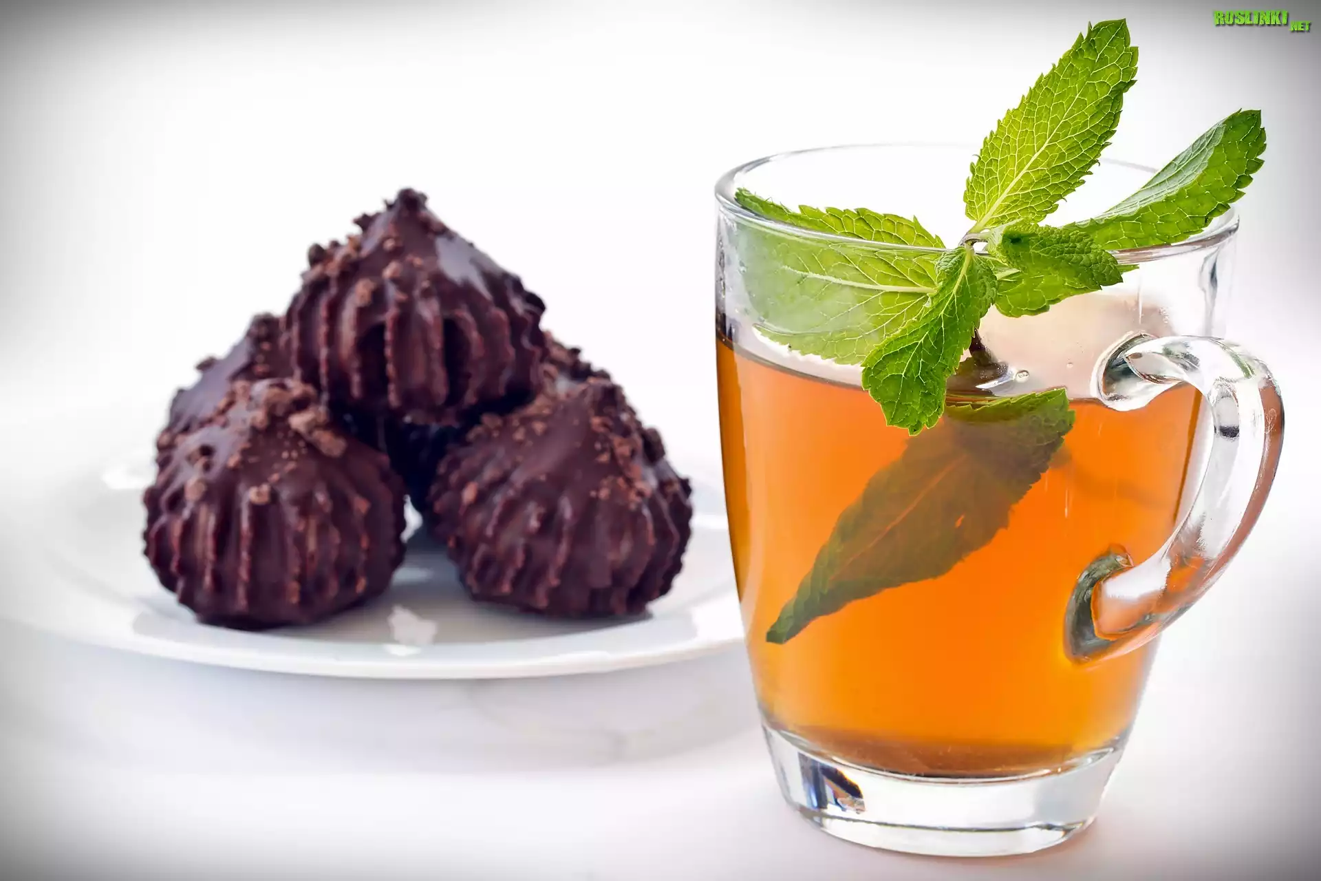 Rośliny: Szklanka, Herbaty, Listki, Mięty, Czekoladowe, Ciasteczka