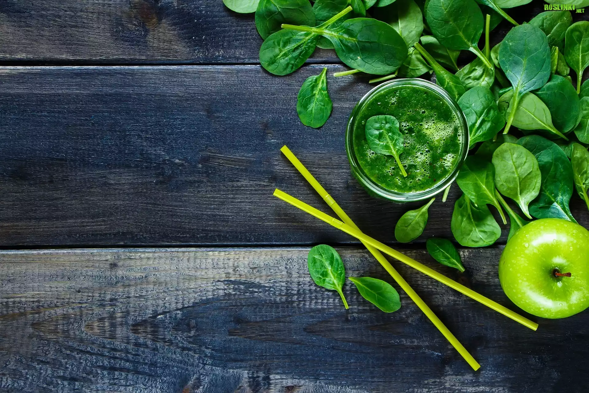Rośliny: Szpinak, Liście, Jabłko, Napój, Smoothie, Słomki
