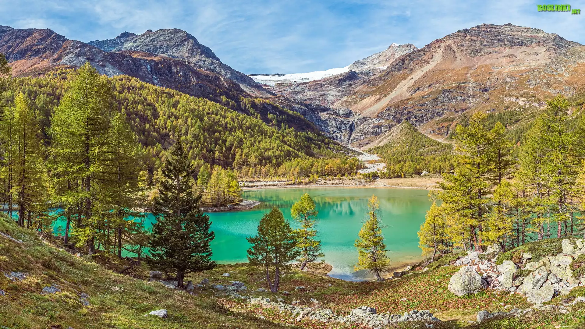 Rośliny: Góry, Las, Drzewa, Jezioro, Palu Lake, Kamienie, Szwajcaria