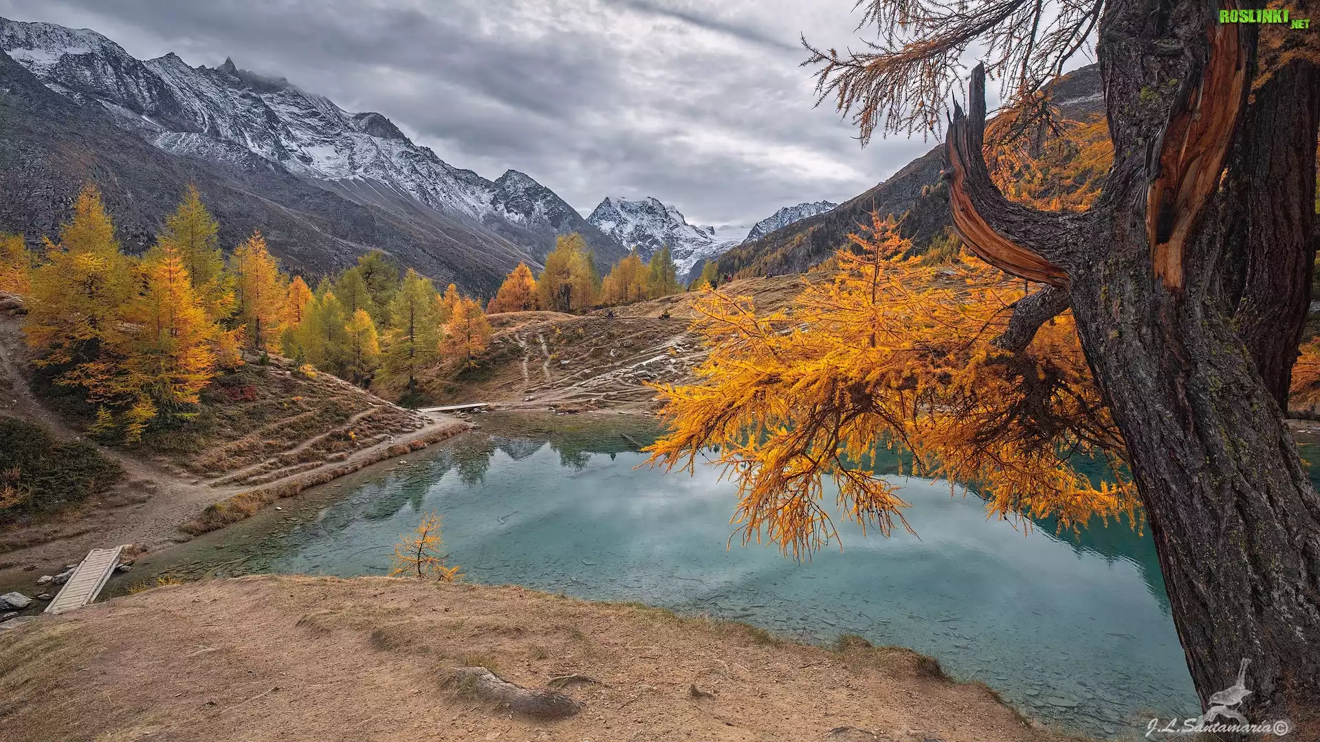 Rośliny: Góry, Jezioro, Lac Bleu, Drzewa, Żółte, Modrzewie, Szwajcaria