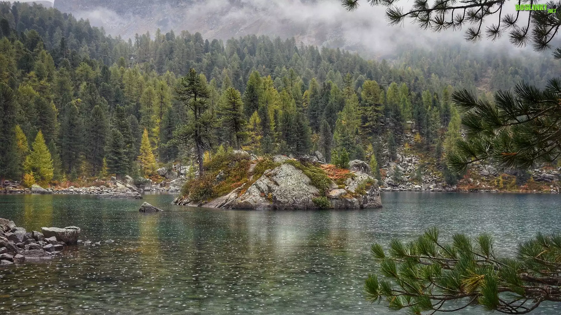 Rośliny: Jezioro Bergsee, Skała, Wysepka, Drzewa, Las, Kanton Berno, Szwajcaria