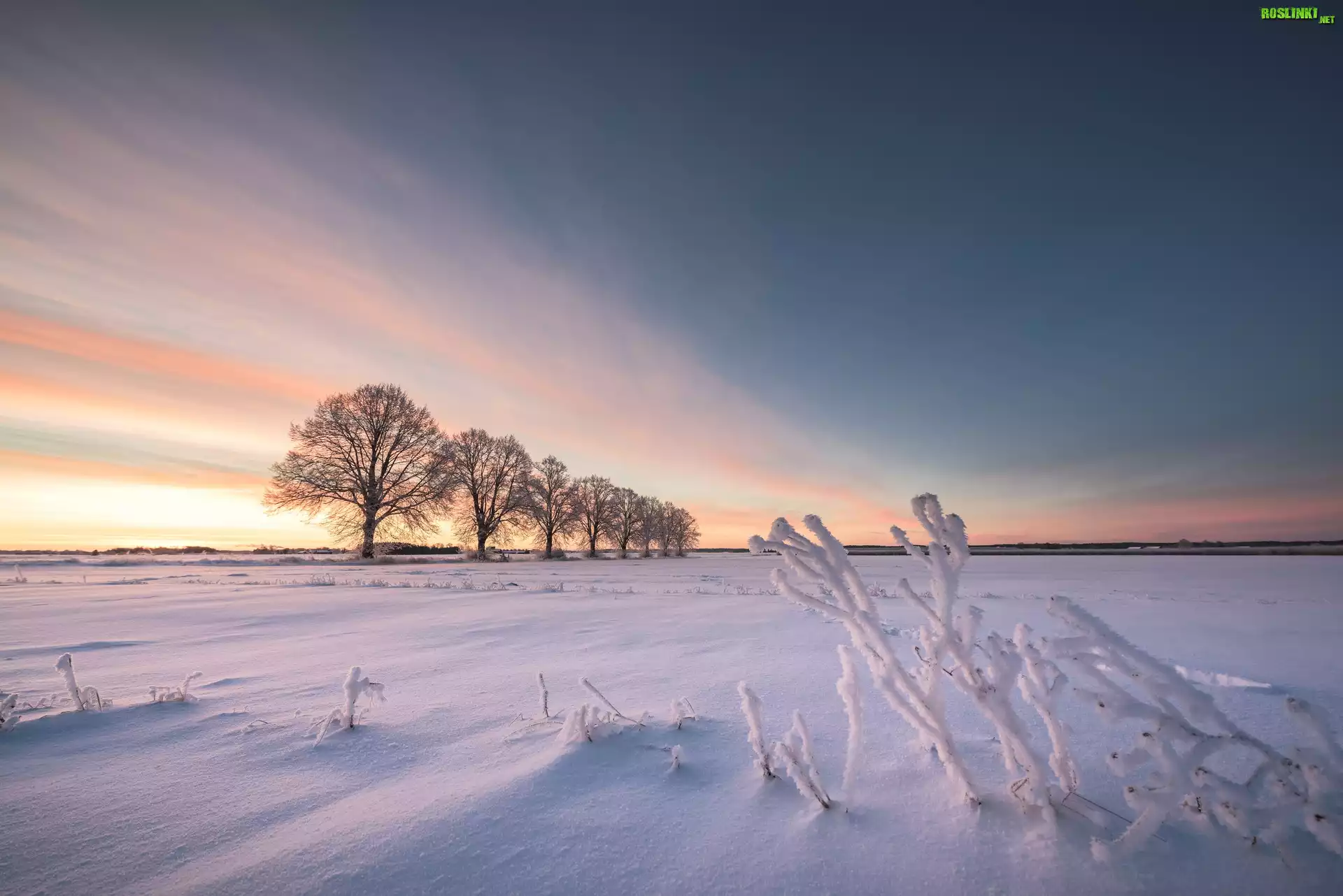 Rośliny: Szwecja, Hrabstwo Uppsala, Zima, Pole, Drzewa