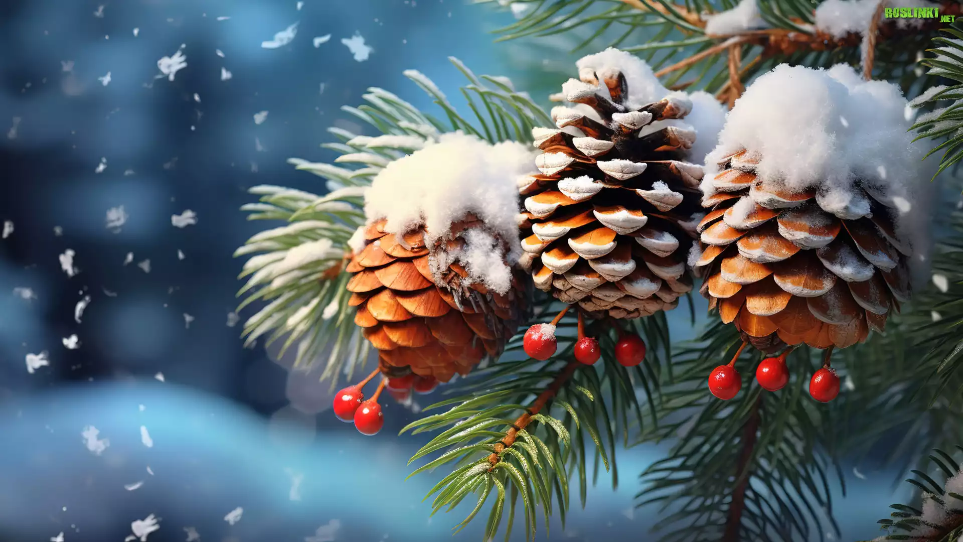Rośliny: Śnieg, Szyszki, Jagody, Gałązki, Zima