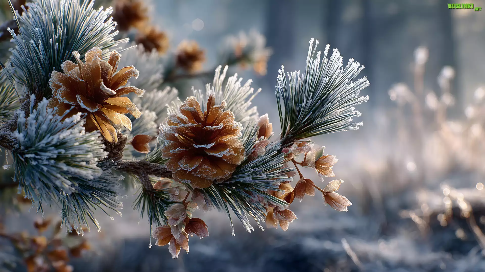 Rośliny: Sosna, Szyszki, Szron, Grafika, AI