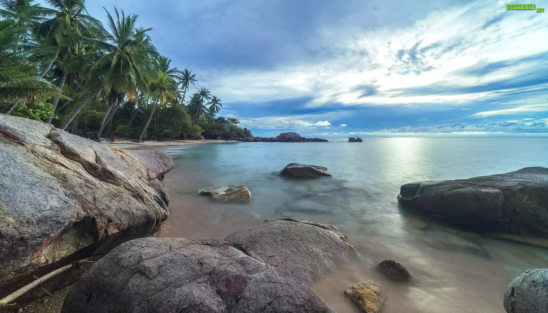Tajlandia, Ocean Spokojny, Zatoka Tajlandzka, Prowincja Surat Thani, wyspa Ko Tao, Morze, Kamienie, Palmy |