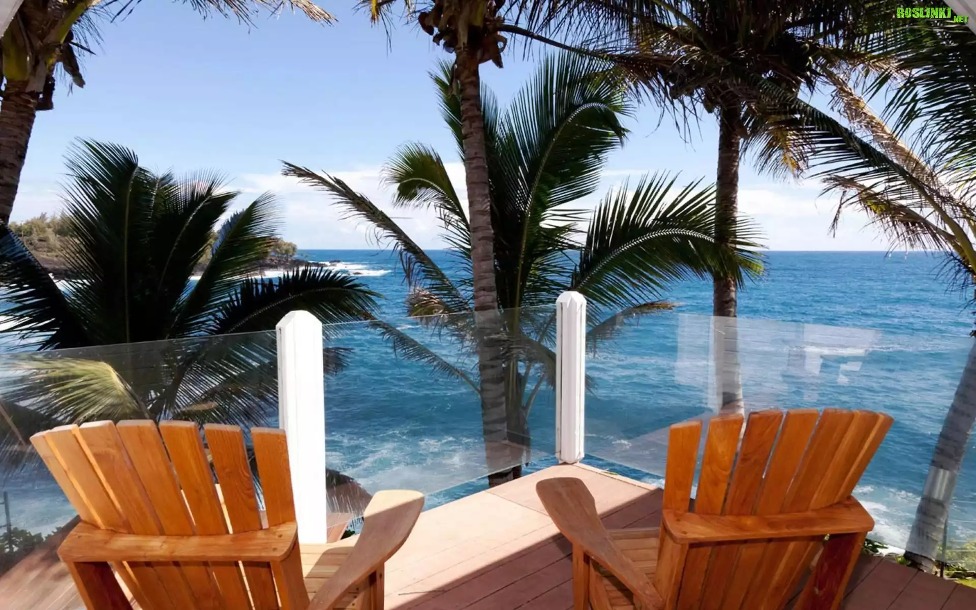 Rośliny: Taras, Krzesła, Morze, Palmy
